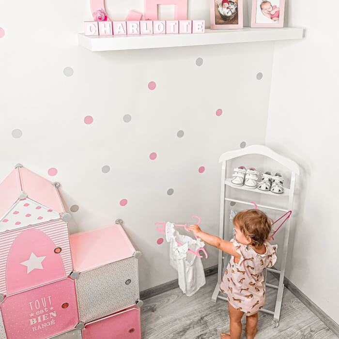 Aménagez l'intérieur de la chambre de votre enfant et décorez un mur vierge avec des points et des boules selon votre modèle