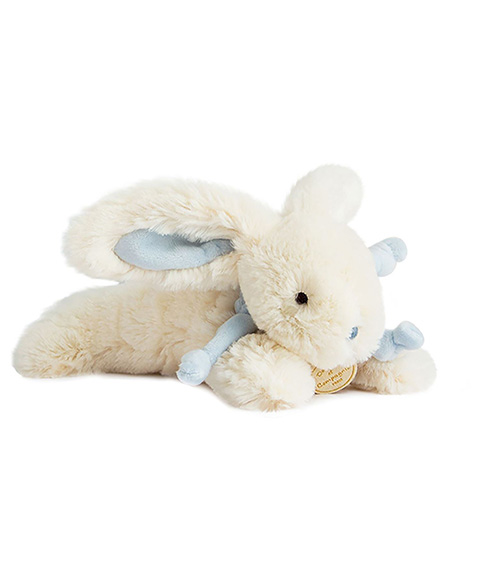 Ce jouet en peluche lapin de la collection "Candy Rabbit" sera le compagnon indispensable de votre enfant. Sa texture soyeuse en fera un doudou que les enfants voudront câliner toute la journée. L'adorable petit lapin de couleur crème aux oreilles bleues est présenté dans une magnifique boîte cadeau avec des graphismes évoquant la modernité et le luxe. Ce doudou est également idéal comme cadeau. Entretien : Laver au bain à 30°. Séchage naturel ou à basse température. Principales caractéristiques : peluche douce, matériau de qualité supérieureconforme aux normes européennes CEbelle boîte cadeauconvient dès la naissance
