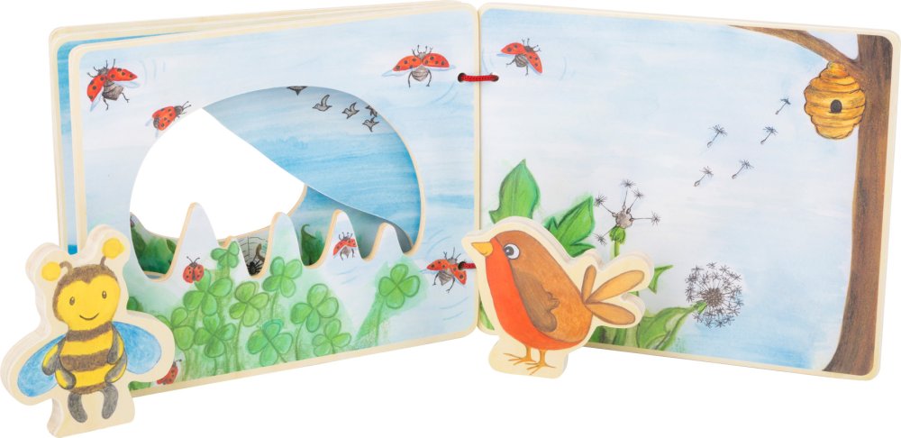 Avec un livre d'images, vous vous élèverez dans les airs. Une abeille et un oiseau accompagneront les petits explorateurs dans leur expédition à travers le livre, les aidant à découvrir la flore et la faune de manière ludique. Le livre stimule l'imagination et permet de vivre des aventures. Une paire de guides animaliers peut être fixée à l'arrière du livre à l'aide de fermetures velcro pour un transport en toute sécurité. Fabriqué à partir de bois certifié FSC®. Caractéristiques principales:livre et 2 figurinesfabriqué à partir de bois 100% FSC® La marque et le certificat FSC® (Forest Stewardship Council) garantissent que le bois utilisé pour fabriquer le produit n'a pas été récolté illégalement et provient de forêts gérées de manière durable ou naturelle, dans le respect d'exigences environnementales et sociales strictes. La marque FSC® sur le produit signifie qu'en l'achetant, vous contribuez à protéger les forêts et à soutenir une gestion durable, responsable ou proche de la nature, grâce à laquelle nos forêts sont plus stables, plus saines, ont une composition d'espèces naturelle et résistent mieux aux conséquences négatives du changement climatique.