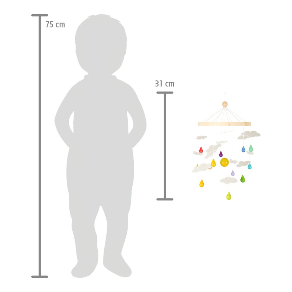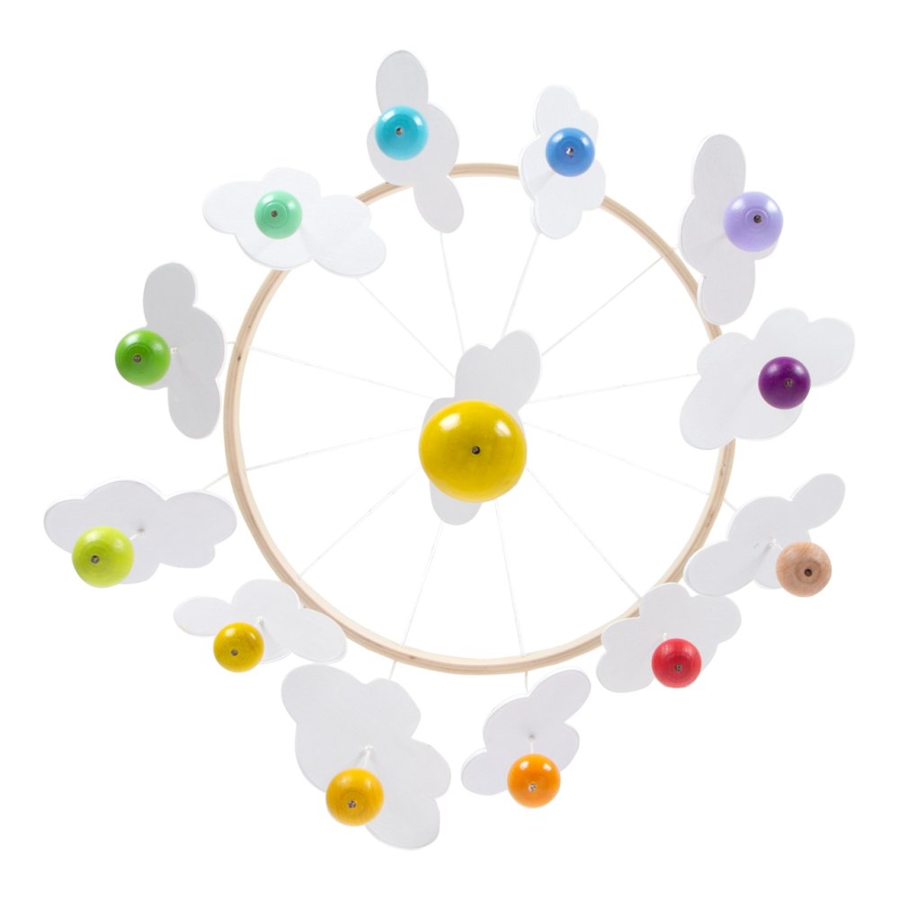 Ce carrousel au-dessus du lit bébé est un bel enrichissement coloré pour chaque chambre d'enfant. Principales caractéristiques : décoration en bois au-dessus du lit bébébeau design coloré