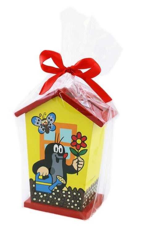 Magnifique tirelire en bois avec le motif de la taupe Krtek légendaire. La tirelire a un bouchon en caoutchouc dans la partie inférieure. Alors, économise avec Krteček ! La tirelire est emballée dans un emballage cadeau. Principales caractéristiques : emballage cadeau© Zdeněk Miler
