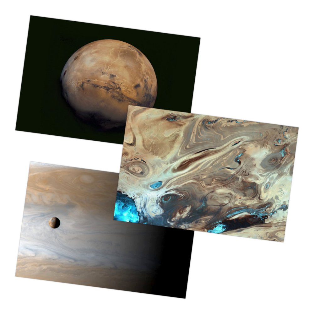 Vous voulez féliciter votre meilleur ami ? Vous cherchez une invitation originale pour votre fête ? Ou voulez-vous simplement encadrer et exposer une image attrayante ? Laissez-vous emporter par le charme nostalgique de cartes postales de première qualité ! Elles sont emballées et stockées en toute sécurité dans une luxueuse boîte en carton rigide décorée sur le thème. Une collection unique d'images à couper le souffle illustrant l'exploration spatiale a été soigneusement sélectionnée parmi les vastes archives de la NASA. Chaque photographie est accompagnée d'un court commentaire de Nirmala Nataraj, décrivant l'objet ou le phénomène représenté. Vous découvrirez toujours quelque chose d'intéressant ! Une palette extraordinairement variée de scènes différentes offre des expériences hors du commun non seulement aux astronomes amateurs et aux fans de science ! Caractéristiques principales:100 cartes postales avec différentes imagesdescriptions d'accompagnement pleines d'intérêtemballage pratique, solide et attrayant