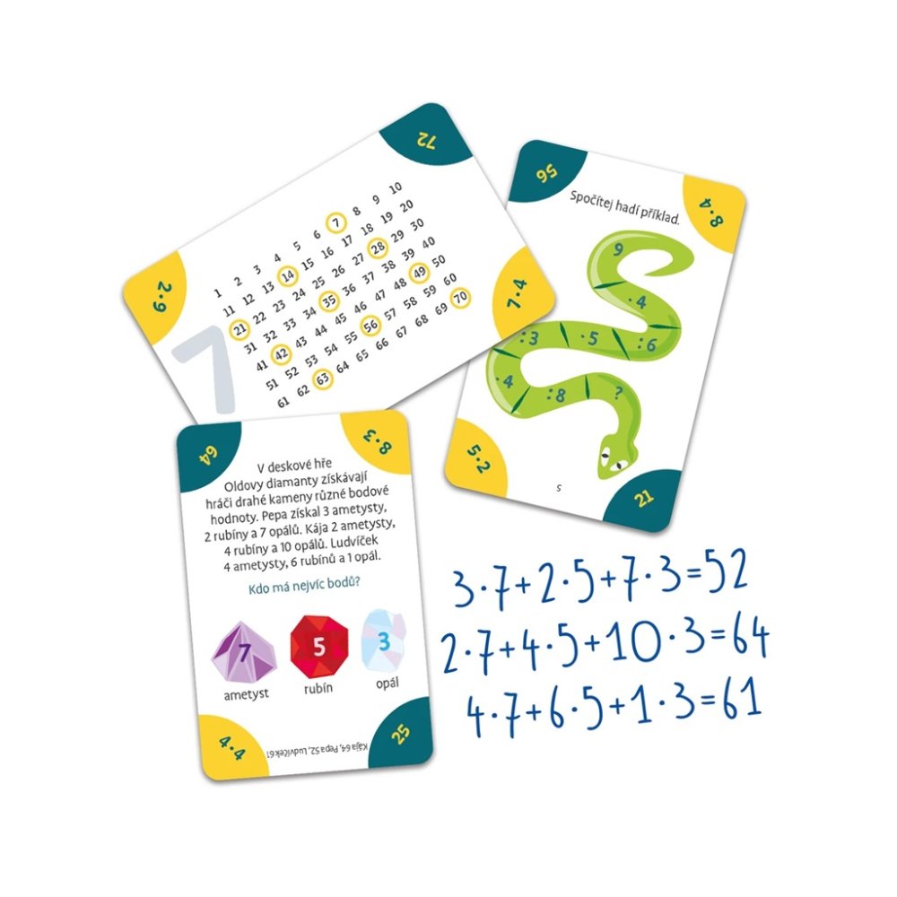 Un jeu de quiz amusant pour tous les petits matheux (niveau primaire) qui, de manière intelligente et intéressante, aide les enfants à découvrir que les tables de multiplication ne sont pas quelque chose à craindre. De manière non violente, les enfants seuls ou avec leurs parents peuvent pratiquer les tables de multiplication des nombres de 1 à 10. Les devoirs et les questions peuvent également être utilisés par les enseignants des écoles primaires. Contenu de l’emballage : 60 cartes de quizrègles du jeu Principales caractéristiques : pratiquer les tables de multiplication de manière ludiqueversion bilingue – une face des cartes en tchèque, l'autre face des cartes en slovaque Fabriqué en République tchèque