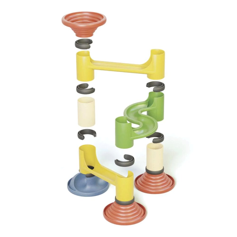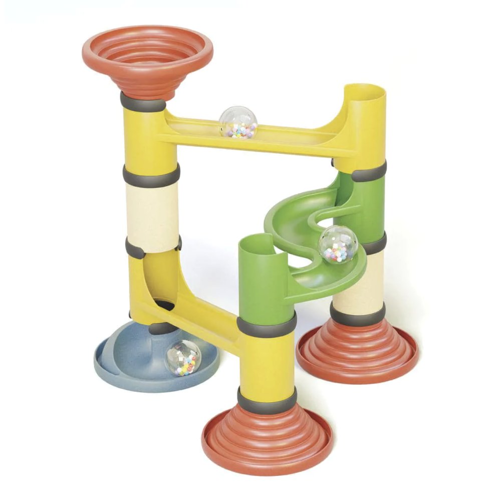 Grâce au kit de construction Migoga Junior, même les plus petits peuvent jouer avec un circuit à billes spécialement conçu pour eux. Toutes les pièces du kit de construction sont grandes et de couleurs différentes, ce qui permet de les distinguer facilement. Les connexions sont simples et intuitives, ce qui permet de construire rapidement différents circuits. Fabriqué à partir de matériaux durables et 100% recyclables dans la série PlayBio. Convient aux enfants à partir de 18 mois. BIO PLAST DE LA SOCIÉTÉ QUERCETTI.Quels sont les avantages des bioplastiques ? Comment est-il obtenu ? La gamme de jouets Quercetti PlayBio est fabriquée à partir d'un biocomposant innovant composé de fibres de bois et de plastique. Ce choix réduit considérablement les émissions de CO2 lors de la production. Le bois utilisé provient de forêts durables certifiées. Un jouet fabriqué à partir de ce bioplastique est résistant, agréable au toucher et à la vue, ainsi qu'à l'odorat : vous sentez le parfum incomparable du bois. Lorsqu'il doit être éliminé, il peut être recyclé à 100 %. Contenu de l’emballage : 2 pistes droites1 piste en S 3 supports1 support de collecte de billes3 grandes billes à hochet Principales caractéristiques : jouet sonorecoordination œil-maindéveloppe la déxtérité et les sens des enfantspensée créative