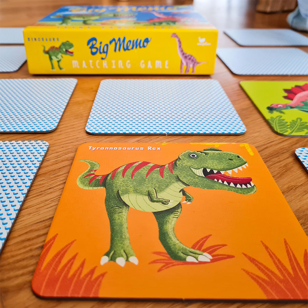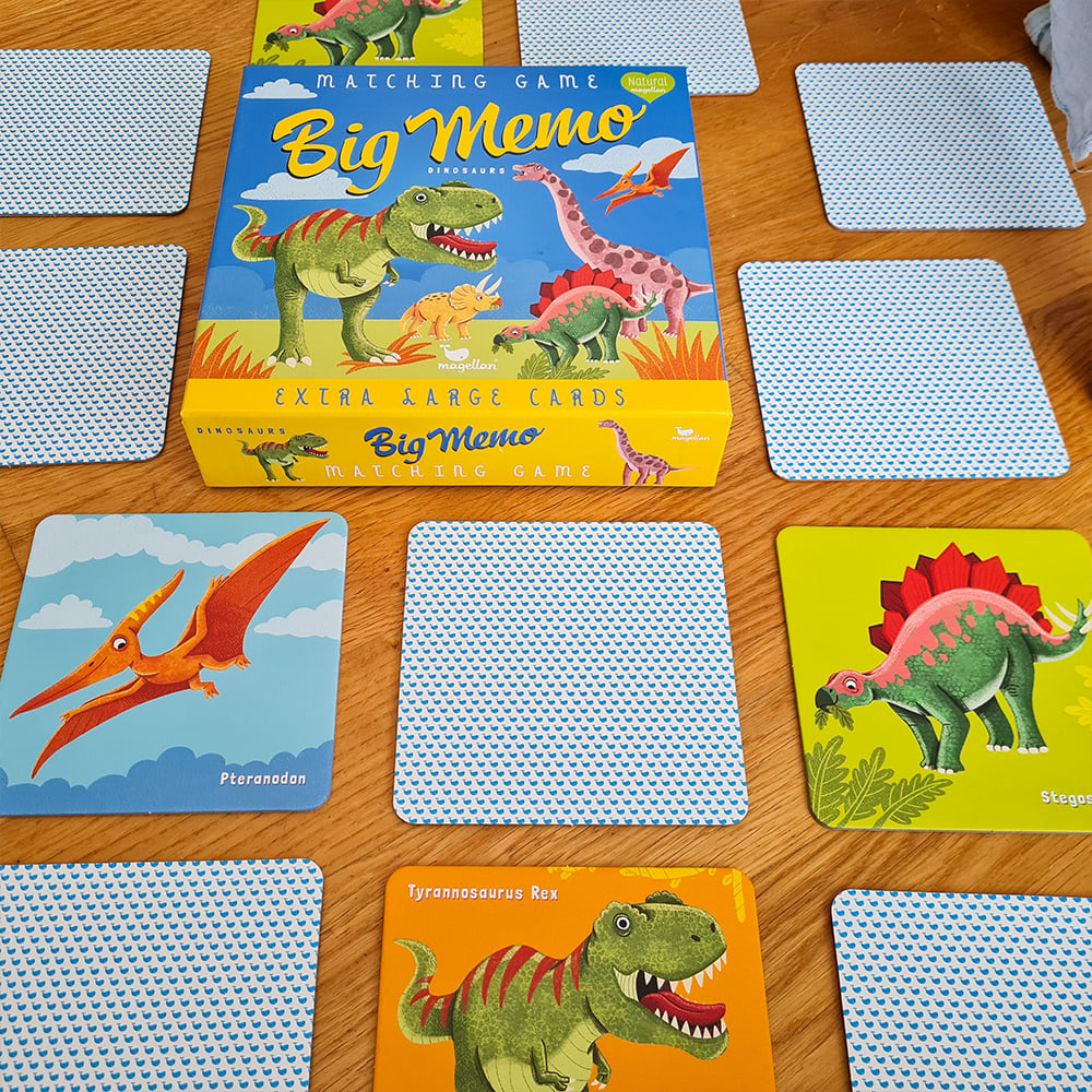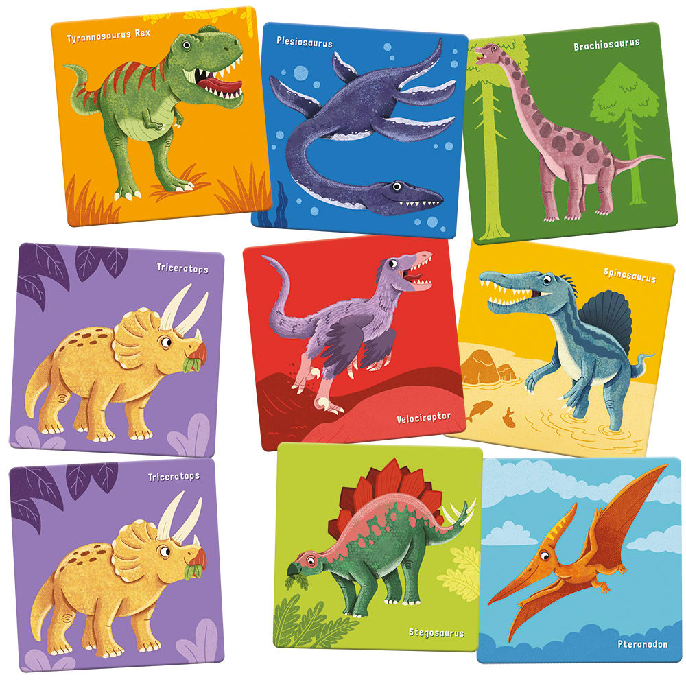 Quel dinosaure n'avait que deux doigts ? Et comment s'appelait son terrible contemporain qui habitait les profondeurs marines ? Dans ce jeu amusant et classique, les petits et grands fans de dinosaures peuvent découvrir les huit créatures préhistoriques les plus célèbres, apprendre leurs noms et entraîner leur mémoire. Soyez attentifs ! Celui qui trouve le plus de paires d’images parmi les cartes cachées gagne ! Principales caractéristiques : développe la pensée logiqueentraîne la perception et la mémoire des enfants