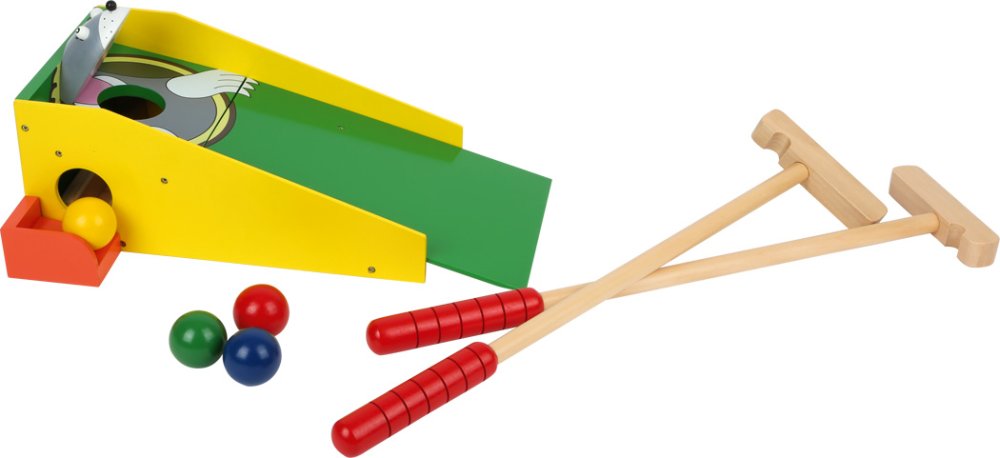 Mini-golf amusant pour les petits professionnels du golf, mais aussi pour les débutants. Ensemble composé de deux clubs, de quatre balles et d'un parcours. Le terrain se compose d'une pente et d'un corps de taupe peint avec une tête tridimensionnelle. Lorsque les balles touchent la tête de la taupe, elles reviennent grâce à la fonction de rebond et il faut avoir du toucher et de l'habileté pour frapper la balle. Jeu idéal pour toute l'année, qui peut être joué à la maison ou à l'extérieur. Contient: 2 clubs de golf, 4 balles colorées et un parcours de golf. Principales caractéristiques : jeu idéal pour toute l'annéedéveloppe le toucher et l'habileté