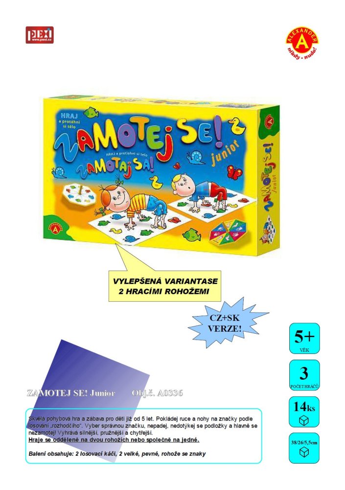 Depuis 10 ans, elle est l'un des plus grands distributeurs de jeux de société, éducatifs et de jouets en République tchèque et en Slovaquie. Elle est l'éditeur du jeu Evoluce fabriqué en République tchèque, qui reçoit régulièrement d'importantes récompenses et mentions honorifiques. Parmi les marques de jeux de société les plus importantes, citons Alexander. Leur offre comprend également une large gamme d'articles de papeterie et un assortiment de différents jouets de nombreuses marques, notamment la pâte à modeler PlayFoam. Leur crédo est de fournir des jouets de qualité et intéressants qui ont un sens et une utilité pour leurs utilisateurs, à un prix raisonnable, accessible au plus grand nombre de clients. Les jouets de leurs fournisseurs doivent toujours répondre aux normes strictes de fabrication des jouets EN 71 et au marquage CE. Ils sont également des sponsors actifs et des organisateurs de nombreux petits et grands événements sportifs ou éducatifs pour les enfants.