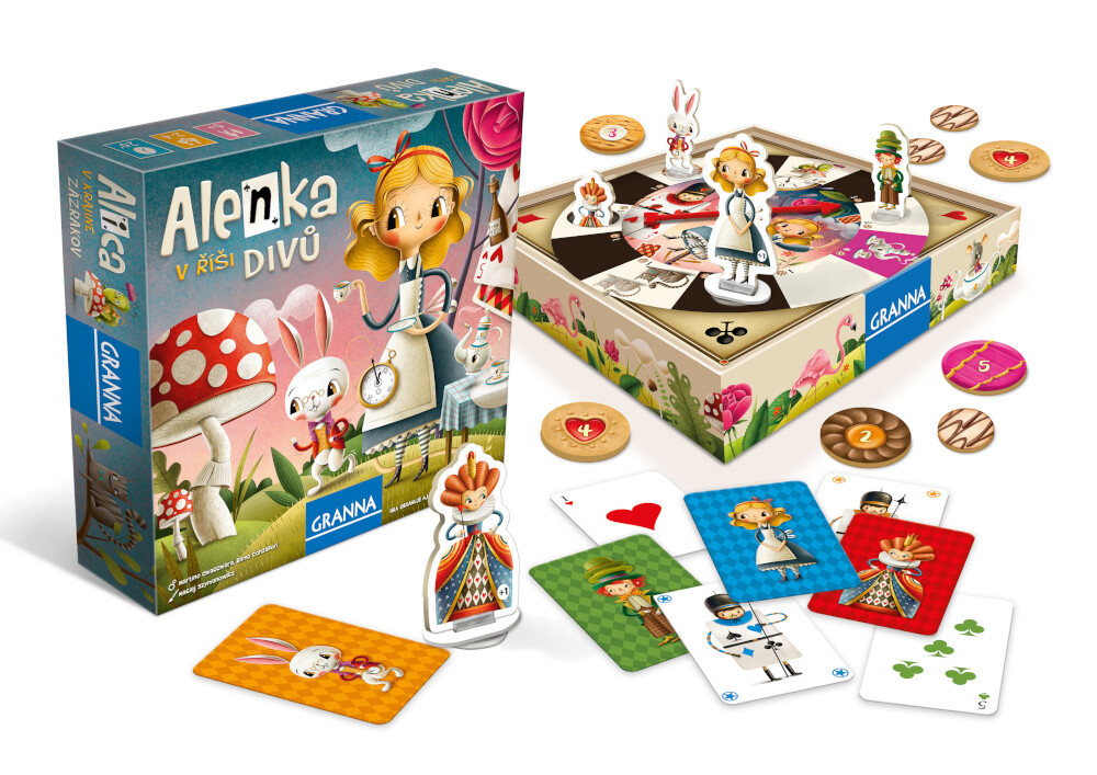 Un jeu de conte de fées qui vous invite à une course folle pour de délicieux gâteaux et biscuits. Dans le jeu, vous représentez l'un des personnages de l'aventure d'Alice au pays des merveilles et rivalisez avec d'autres personnages. La chenille parlante, le Chapelier fou ou la Reine de cœur vous guideront à travers cette histoire vraiment magique. Principales caractéristiques : contient 24 gâteaux, 20 biscuits, 44 cartes, 4 petites et 4 grandes figurines, 8 supports en plastique, 4 supports pour les grandes figurines, une aiguille d'horloge, un plateau de jeuentraîne l'attention et développe la logiquemanuel en CZ et SK