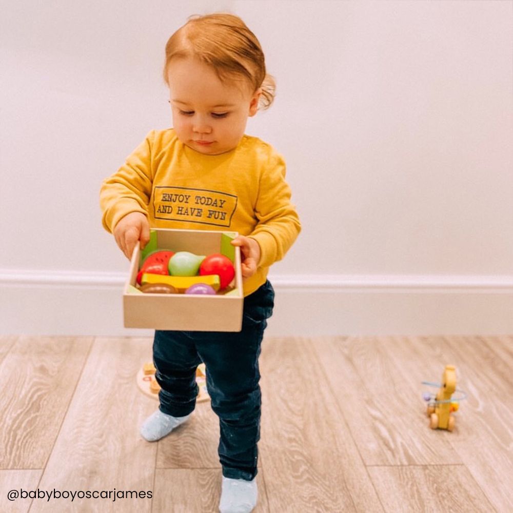 Cette caisse en bois de fruits frais du marché contient une sélection de fruits tels que des bananes, des pommes, des fraises, des poires, des melons, etc. Un excellent ajout à la cuisine en bois, pour tous les cuisiniers en herbe. Les aliments en bois pour jouets de Bigjigs Toys sont idéaux pour aider votre enfant à découvrir l'importance d'une alimentation saine et équilibrée, d'où viennent nos aliments et comment nous les préparons. Une fois le jeu terminé, les aliments en bois peuvent être rangés dans la boîte pratique et sécurisés par un couvercle coulissant transparent. Principales caractéristiques : développe la motricité de l'enfantboîte pratique pour ranger les légumesfabriqué à partir de matériaux de haute qualité, fournis de manière responsableest conforme aux normes de sécurité européennes actuelles
