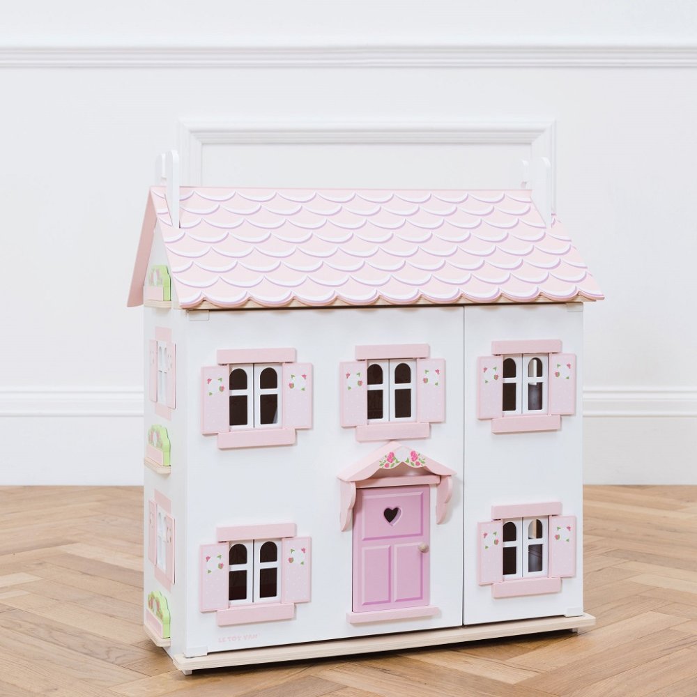 La maison de Sophie est un véritable classique ! Cette luxueuse maison de poupée à trois étages au design intemporel fait rêver tous les enfants. Ce jouet avec une touche de nostalgie est peint à la main dans une combinaison de rose pastel et de blanc. Les fenêtres et les volets peuvent être ouverts et fermés, et vous y trouverez également un motif floral. La maison a de nombreux beaux détails – un toit festonné qui brille, et un intérieur avec une décoration différente dans chaque pièce. Aussi belle que durable – c'est un jouet sans plastique.Livré sans équipement, les enfants peuvent donc compléter les meubles selon leurs propres goûts. Convient aux figurines jusqu'à 12 cm, celles-ci ne sont pas incluses dans l'emballage. Des jouets avec un butTous les jouets Le Toy Van sont fabriqués dans un but précis : durer longtemps. Conçus avec amour par des artisans expérimentés, selon des pratiques éthiques et avec des matériaux durables, plus respectueux de notre planète. Principales caractéristiques : fabriqué de manière éthique à partir de bois durabletesté selon les normes les plus strictespeint avec des peintures non toxiques à base d'eauinspire le jeu imaginatifdéveloppe les compétences cognitivesjouet sans plastiquefigurines et meubles vendus séparément   Prix du jouet :Right Start Best Toy Award 2012Toy Talk Award 2012Top 100 Baby Products    Collection Daisylane : Collection prestigieuse de maisons de poupées et d'accessoires de la marque Le Toy Van. Il y a plus de 25 ans, le fondateur Georges a conçu sa toute première maison de poupées, pierre angulaire de cette entreprise. Fabriquées de manière éthique à partir de matériaux durables, les maisons de poupées en bois Daisylane sont uniques et ne freineront pas l'imagination des enfants. Un héritage familial, un véritable investissement dans le jeu.   La marque et le certificat FSC® (Forest Stewardship Council) garantissent que le bois utilisé pour fabriquer le produit n'a pas été récolté illégalement et provient de forêts gérées de manière durable ou naturelle, dans le respect d'exigences environnementales et sociales strictes. La marque FSC® sur le produit signifie qu'en l'achetant, vous contribuez à protéger les forêts et à soutenir une gestion durable, responsable ou proche de la nature, grâce à laquelle nos forêts sont plus stables, plus saines, ont une composition d'espèces naturelle et résistent mieux aux conséquences négatives du changement climatique.