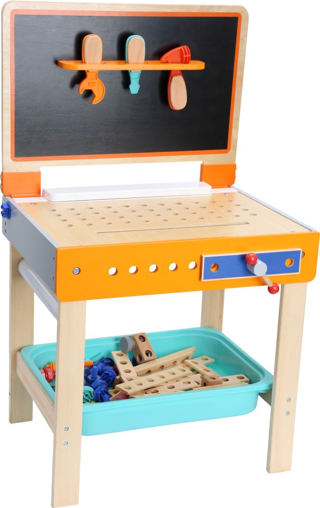 Le bureau de travail multifonctionnel avec panneau rabattable offre la possibilité d'utiliser le bureau pour peindre ou comme établi. Le bureau est équipé d'un panneau de dessin rabattable avec une étagère pour les outils, d'une surface de travail avec des trous de fixation, d'un espace latéral pour un rouleau de papier à dessin, d'un coffre de rangement pour les pièces détachées. Les composants pliables sont inclus dans l'emballage.  Principales caractéristiques : construction robusteInspire un jeu créatif et imaginatifdéveloppe la dextérité et la coordination