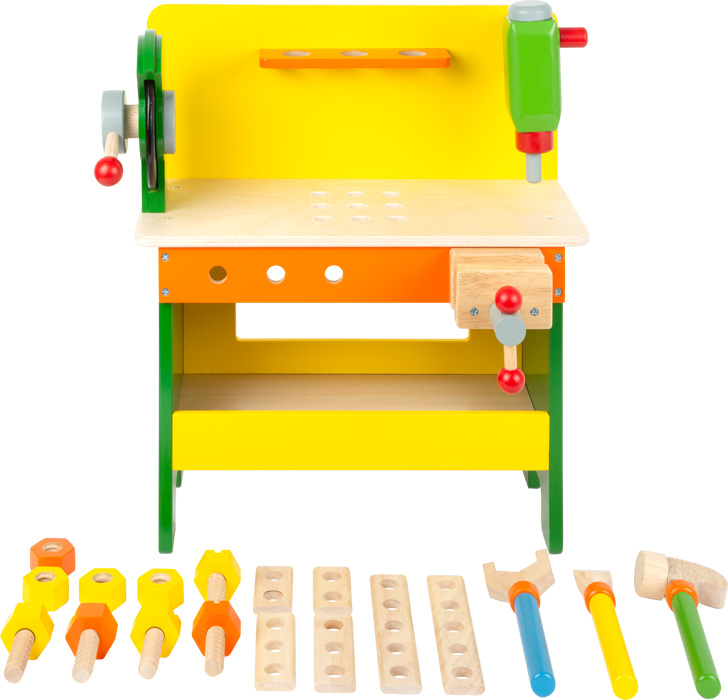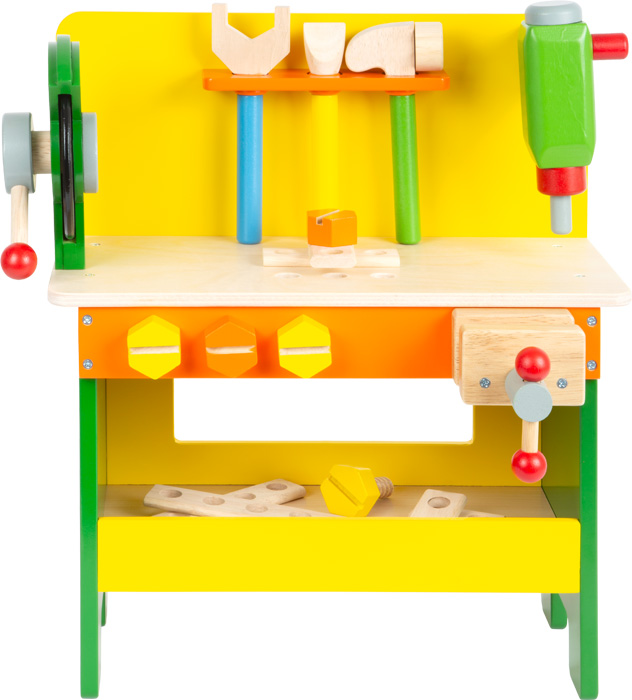 Vous cherchez de quoi occuper un petit bricoleur ? Vous avez peut-être essayé quelque chose de nouveau, mais il manque toujours quelque chose. Nous vous présentons Ponk Christian : une expérience qui divertira votre enfant. Ponk Christian apporte beaucoup de joie, de rires et de plaisir. Ponk Christian est plus qu’un simple produit. Il peut éveiller l’imagination et ouvrir les portes d’un monde plein de possibilités. Et tout cela avec une touche d’humour ! Essayez Ponk Christian et rejoignez les milliers de clients satisfaits qui ont déjà découvert sa magie.  Il est équipé d’une perceuse amovible, d’une scie, d’un étau, d’un marteau, d’un tournevis, de clés, de vis et de plaques perforées. C’est le jouet idéal pour les petits artisans ! Construction solide en différentes essences de bois, peinte en couleur.  Principales caractéristiques : construction robuste Inspire un jeu créatif et imaginatifdéveloppe la dextérité et la coordination