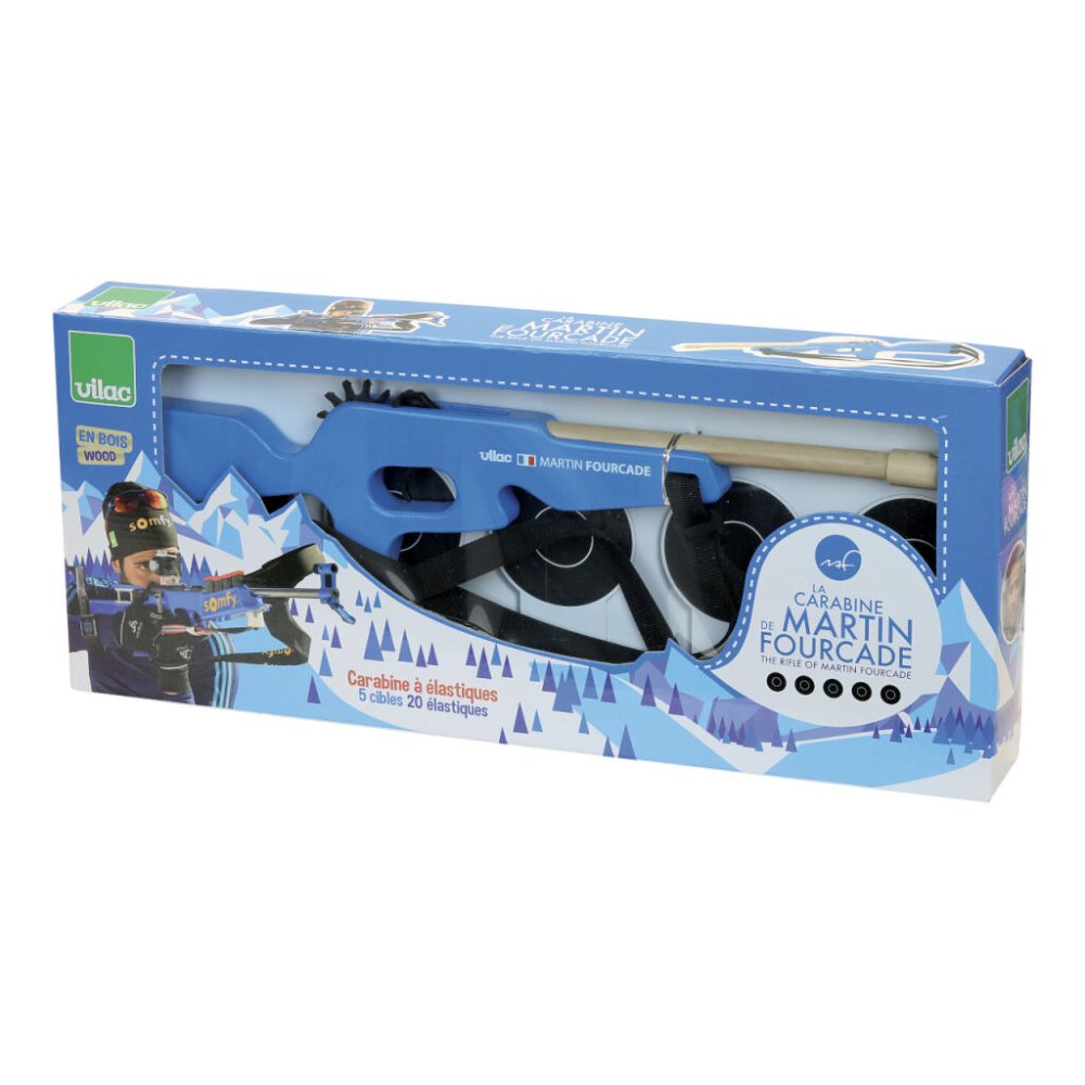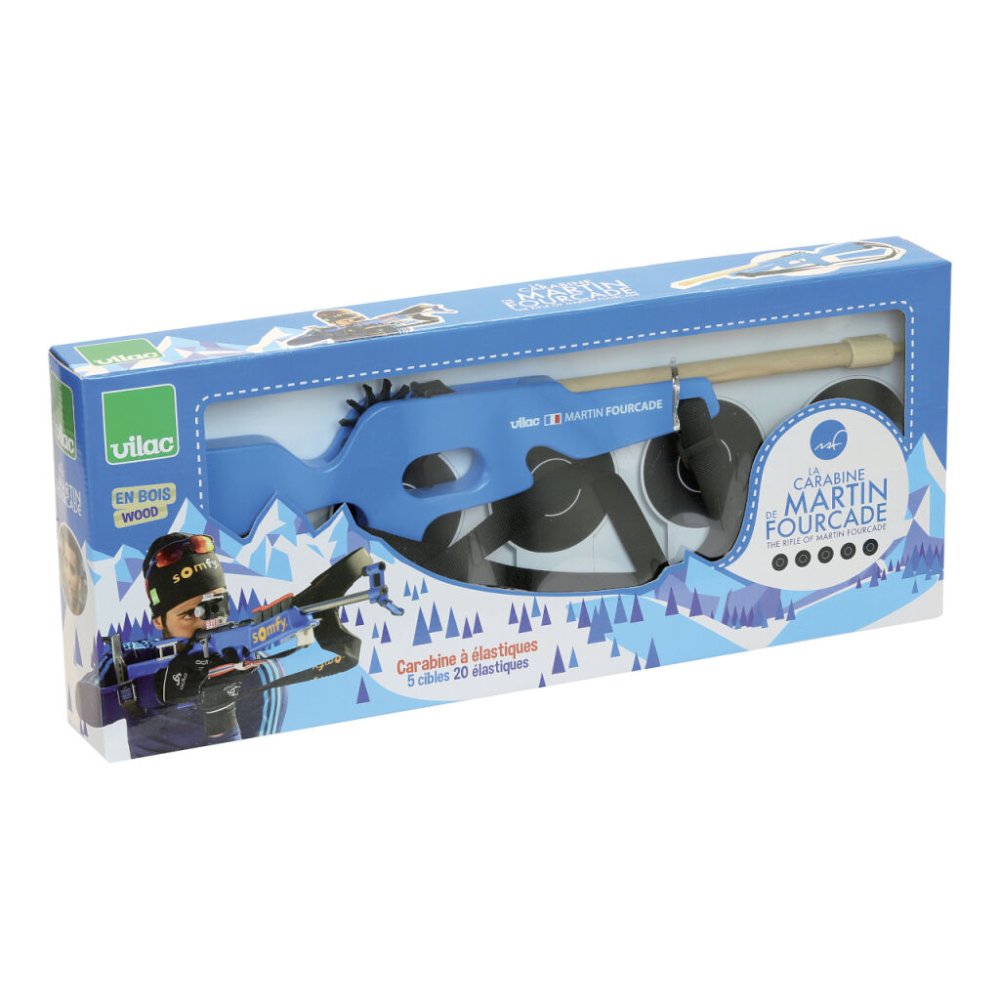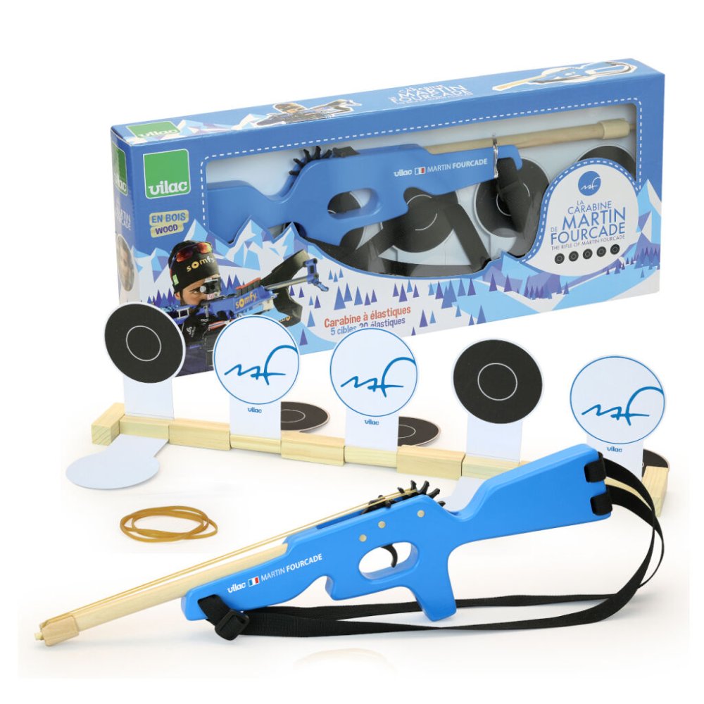 Avez-vous de jeunes passionnés de sport à la maison qui n'ont pas peur de l'hiver ? Ce jouet est fait pour eux ! Lorsqu'ils jouent, les enfants s'inspirent le plus souvent des contes de fées, des livres ou des émissions de télévision. Les émissions sportives sont-elles les principales émissions regardées chez vous en hiver ? Alors il est possible que vous ayez de jeunes passionnés de biathlon à la maison. Les Tchèques sont fans de biathlon, ainsi que de hockey et de ski. Nous allons vous présenter aujourd'hui un jouet en bois qui ravira les jeunes passionnés de sport. La carabine de biathlon du sportif français Martin Fourcade. Fourcade est quintuple champion olympique et détenteur de onze médailles d'or aux Championnats du monde. Si vous regardez régulièrement le biathlon, vous savez certainement à quel point Martin est passionné par sa discipline. Il aime non seulement son sport, mais aussi ses fans et ses supporters. Il est donc naturel qu'il ait voulu faire quelque chose pour eux aussi, pour vous. Il voulait que même les plus petits aient la possibilité d'apprendre quelque chose sur le biathlon et de jouer à des athlètes participant à des championnats du monde ou aux Jeux olympiques. Martin Fourcade est né et a grandi en France, c'est peut-être aussi pourquoi il a décidé de contacter l'entreprise française Vilac, qui conçoit et fabrique des jouets. Ensemble, dans les montagnes enneigées du Jura, ils ont imaginé un projet qui a ensuite enthousiasmé de nombreux enfants et parents. Ils ont fabriqué la carabine de biathlon de Martin. Comme tous les jouets de Vilac, cette carabine est fabriquée dans le respect de l'environnement. Le jouet est en bois et possède des sangles textiles réglables. La crosse de la carabine est bleue, le drapeau français et les noms des auteurs du projet, Martin Fourcade, Vilac, sont placés sous le canon. L'emballage contient cinq cibles pliantes et vingt élastiques. Réglez les sangles pour qu'elles conviennent à votre fils, votre fille ou à vous-même. Placez les cibles à la distance souhaitée et mettez-les dans la bonne position. Montrez aux enfants comment étirer correctement et en toute sécurité l'élastique sur la carabine en bois. Maintenant, il suffit de viser et d'appuyer sur la gâchette ! Voyons, en combien d'essais atteindrez-vous les cinq cibles ? Principales caractéristiques : sangles textiles réglables cinq cibles pliantes et vingt élastiques inclus