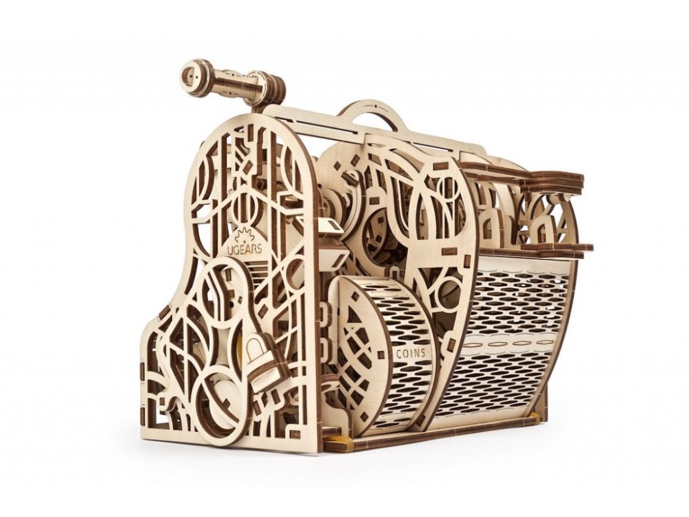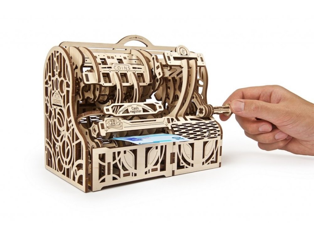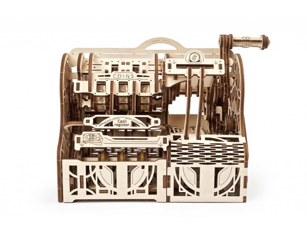 Idéal pour les ventes de limonades maison ! Kit de construction d’une caisse enregistreuse mécanique antique art déco en contreplaqué. La caisse enregistreuse est équipée de compartiments séparés pour les billets et les pièces, ainsi que d’un espace de rangement pour un stylo et des notes. Elle accepte et compte la plupart des pièces courantes d’un diamètre de 10–35 mm. Les tiroirs à monnaie sont sécurisés par un code et une clé optionnels, leur ouverture réinitialise le compteur. Elle permet également de stocker les reçus et les enregistrements. Convient comme jouet et tirelire. Livré avec un manuel d’assemblage détaillé. Principales caractéristiques : 405 pièces coupées avec précisiondifficulté d'assemblage moyenneaccepte et compte les billets et les piècesstocke les reçus et les enregistrementsprotection par code et clé optionnels définis par l’utilisateurConçu et fabriqué en Ukraine