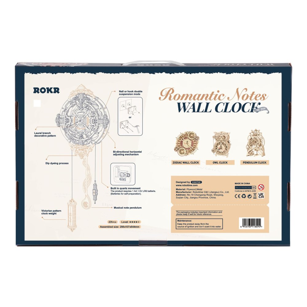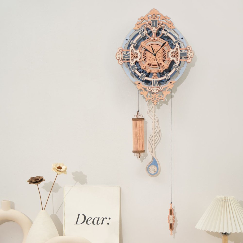 Le puzzle d'horloge murale offre une double dose de plaisir et de détente. Détendez-vous en assemblant un cadran de grande taille, finement décoré d'ornements et d'un mécanisme pas à pas fonctionnel. Une fois terminées, ces horloges vous raviront avec leur tic-tac apaisant et le mouvement oscillant du pendule. La palette de couleurs soigneusement choisie, combinant des nuances de bois naturel avec du bleu et de l'orange, en fera une décoration incontournable de votre pièce. Un mouvement indépendant à piles assure une mesure précise du temps pour plus de commodité. Vous n'avez donc pas à vous soucier de remonter le mécanisme et à l'utiliser uniquement pendant les moments de détente, pour créer une ambiance. La vitesse de son tic-tac peut être ajustée individuellement en modifiant et en ajoutant des poids, par exemple sous forme de pièces de monnaie. L'emballage contient le matériel de fixation pour accrocher l'horloge au mur, et son cadran peut ensuite être tourné pour qu'il soit toujours droit. Livré non assemblé, emballé dans une boîte. Équipé d'instructions de montage détaillées. Caractéristiques principales:mouvement d'horlogerie électrique indépendant (1 pile AA non incluse)mécanisme de pendule fonctionnel231 pièces finement découpéesdifficulté d'assemblage moyenne