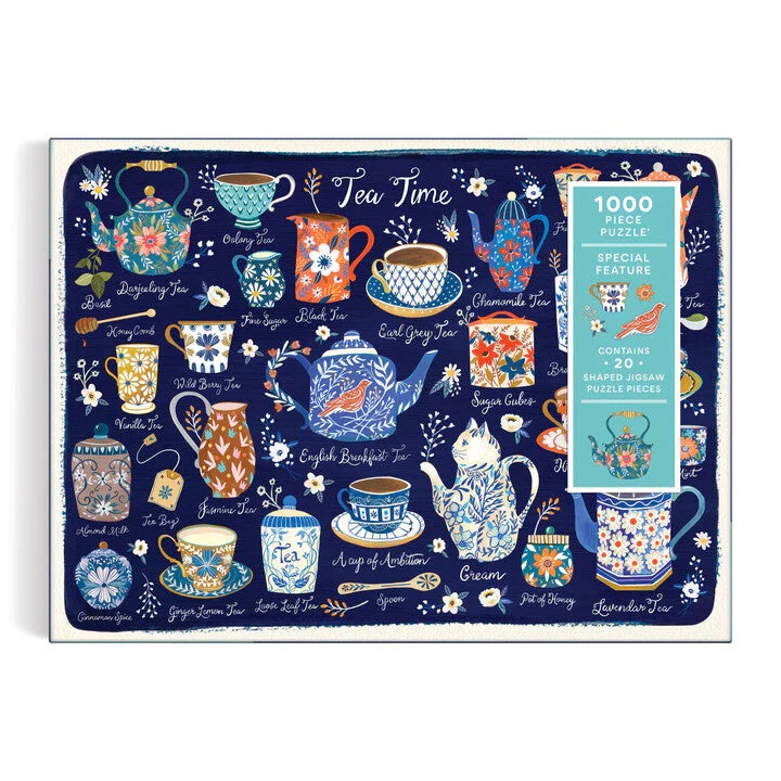 Le puzzle contient une série d'éléments pour la préparation du thé, tels que des théières, des soucoupes et des cuillères. Ce puzzle contient également 20 pièces de forme spéciale. Le puzzle est emballé dans une boîte solide, pour une réutilisation et un stockage faciles. Idéal comme cadeau. L'auteur de l'image est Christine de Carvahlo. Les puzzles sont fabriqués à partir d'une proportion importante de papier recyclé et offrent une impression de haute qualité avec des encres non nocives. Ils sont dotés d'une finition de surface mate qui garantit une reproduction fidèle des détails et des couleurs en toutes circonstances. Leur face arrière est recouverte d'une surface lisse et agréable au toucher, ce qui empêche la formation de poussière lors du stockage du puzzle démonté. En plus des pièces soigneusement emballées, vous trouverez également dans l'emballage un prospectus avec une image indicative, qui contient généralement des informations supplémentaires sur les créateurs et le contexte de la création de l'œuvre. Livré dans une boîte en carton exceptionnellement solide et attrayante, fabriquée à partir de carton recyclé et de matériaux issus de sources durables, certifiée FSC®. Principales caractéristiques : 1000 pièces coupées avec précisionfabriqué avec des matériaux recyclés et issus de sources durablesmotif soigneusement sélectionné par des créateurs et artistes de renomimpression et réalisation de la plus haute qualitécontient une image indicative