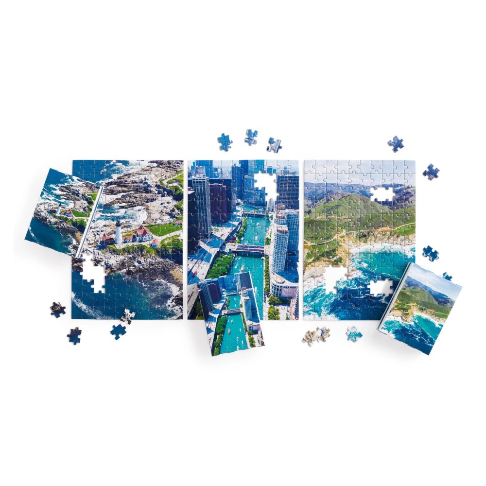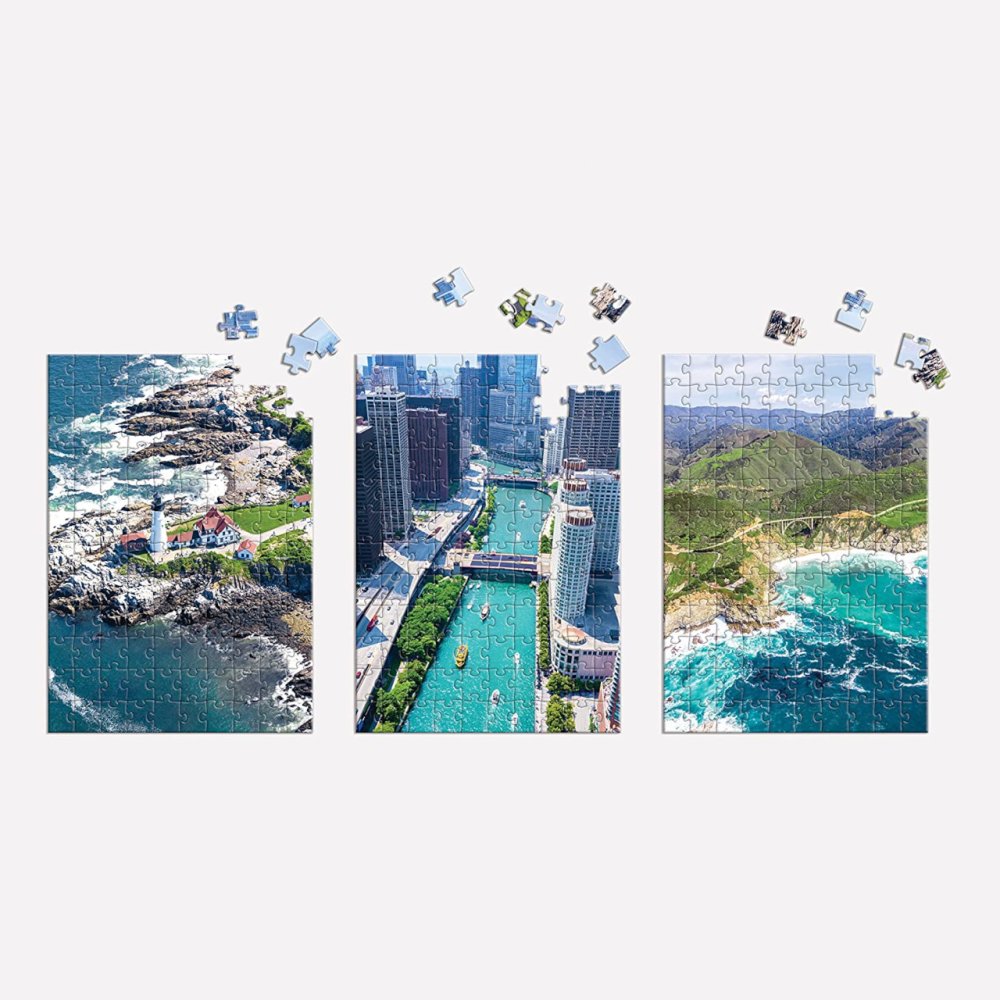 Laissez-vous éblouir par les vues aériennes les plus populaires du Maine, de Chicago et de Big Sur, portant la signature facilement reconnaissable du célèbre photographe américain Gray Malin. La collection exclusive de trois puzzles est un cadeau exceptionnel pour tous les fans de puzzles et de photographie artistique. Chaque puzzle est emballé séparément dans une boîte attrayante, vous pouvez donc les offrir pour différentes occasions ! Les puzzles Galison sont fabriqués avec une part importante de papier recyclé et offrent une impression de haute qualité avec des encres non toxiques. Ils sont dotés d'une finition de surface mate qui garantit une reproduction fidèle des détails et des couleurs en toutes circonstances. Leur face arrière est recouverte d'une surface lisse et agréable au toucher, ce qui empêche la formation de poussière lors du stockage du puzzle démonté. En plus des pièces soigneusement emballées, vous trouverez également dans l'emballage un prospectus avec une image indicative, qui contient généralement des informations supplémentaires sur les créateurs et le contexte de la création de l'œuvre. Livré dans une boîte en carton exceptionnellement solide et attrayante, fabriquée à partir de carton recyclé et de matériaux issus de sources durables, certifiée FSC®. Principales caractéristiques : 3 paquets en 1, 3×120 pièces coupées avec précisionfabriqué avec des matériaux recyclés et issus de sources durablesmotif soigneusement sélectionné par des créateurs et artistes de renomimpression et réalisation de la plus haute qualitécontient des images d’instructions