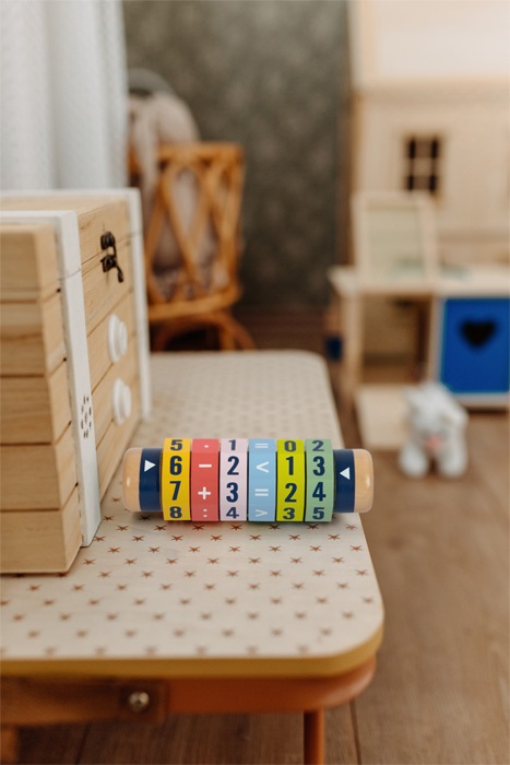 Cette calculatrice motrice en bois offre un large éventail de possibilités mathématiques et encourage les enfants à réfléchir et à résoudre des problèmes mathématiques. Le cylindre de calcul moteur en bois avec six pièces rotatives permet aux jeunes mathématiciens d'additionner, de soustraire, de multiplier et de diviser jusqu'au chiffre 99. En tournant les pièces, on établit des équations mathématiques qui doivent être résolues. La construction compacte permet d'emporter cette calculatrice partout – une excellente idée ! Principales caractéristiques : calcul de 1 à 99exerce les compétences mathématiques de basetaille compacte