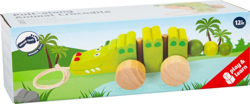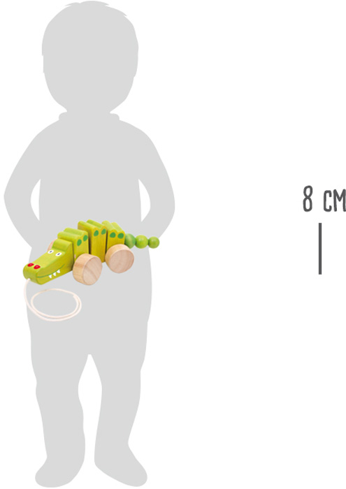Ce crocodile amusant, fabriqué en bois de hêtre vert émaillé et non traité de haute qualité, remue joyeusement derrière les enfants lorsqu'on tire sur la ficelle. Grâce à la corde, les plus petits peuvent facilement tirer ce mignon crocodile à tirer derrière eux et se promener ensemble. Principales caractéristiques : favorise l'équilibre et la coordination des mouvementsdesign et couleurs gais et joyeux