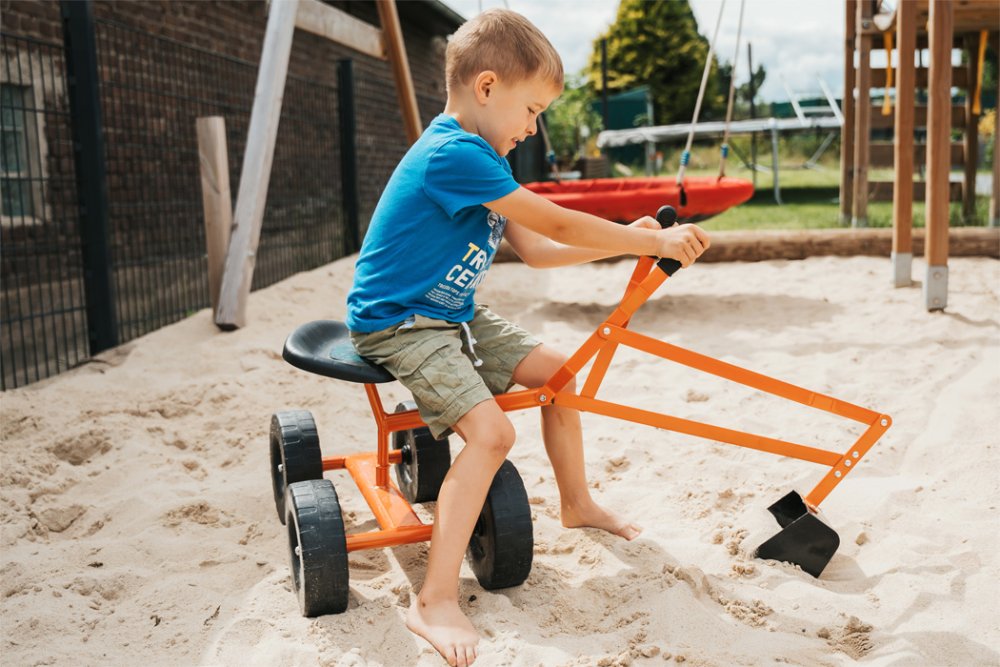 La pelleteuse en métal avec de grandes roues en plastique (Ø 20 cm) est un succès auprès des petits constructeurs. Elle pivote à 360°, possède un siège confortable (hauteur du siège 35 cm), est stable et légère à la fois. Cette pelleteuse est le jouet idéal pour tous les bacs à sable. Principales caractéristiques : godet de la pelle rétro mobile, qui se commande avec deux leviers (fonction de préhension et de vidage) de haute qualité et sûr pour un jeu d'enfant insouciant fabriqué en Allemagne