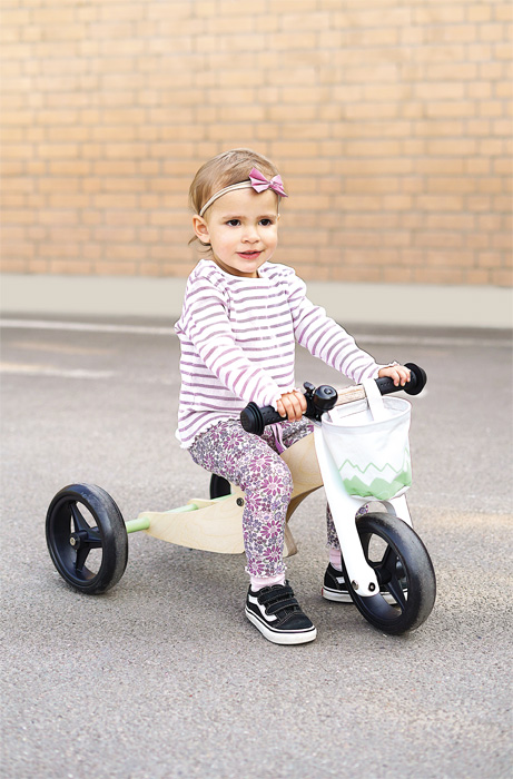 D'abord le tricycle d'entraînement, puis le vélo d'équilibre ! Ce tricycle équilibré compact impressionne par ses nombreuses fonctions et son design frais et moderne. Les jeunes cyclistes peuvent commencer avec ce modèle de tricycle sûr. La hauteur de la selle peut être réglée sur 3 niveaux et la distance du siège peut être réglée sur 3 positions. Dès que les compétences de conduite et l'équilibre de votre enfant s'améliorent, le tricycle peut être rapidement transformé en un vélo d'équilibre classique. Pour une sécurité maximale, le guidon est équipé d'un limiteur de rayon de braquage. Une sonnette, un sac de guidon amovible, des poignées en caoutchouc, des pneus souples EVA indestructibles et une selle rembourrée, tout cela procure beaucoup de plaisir et de confort lors de la conduite ! Les draisiennes et les tricycles entraînent la motricité, l'équilibre et la coordination mieux que tout autre véhicule pour enfants – et ils le font de manière unique ! Principales caractéristiques : entraîne la motricité et l'équilibrela taille de la roue est de 17,8 cmpour les enfants à partir de 1 ancharge maximale de 50 kg