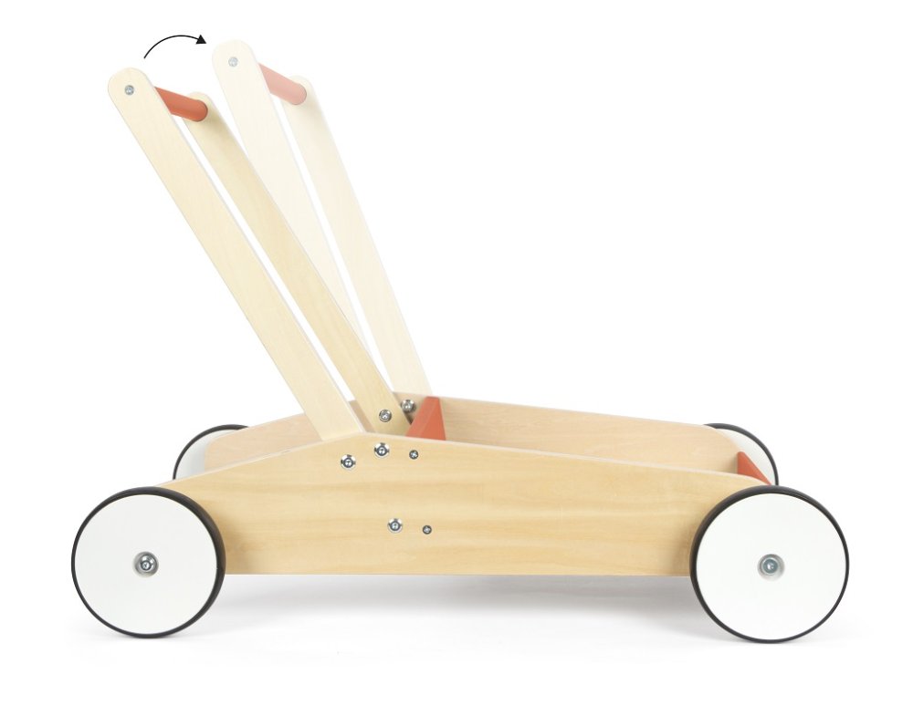 Le compagnon idéal pour les promenades et les jeux. Ce trotteur pour enfants n'est pas seulement un jouet, mais aussi le compagnon idéal pour les premiers pas des petits aventuriers. Grâce à la combinaison du bois naturel et de la couleur rouge cuivrée, il attire tous les regards dans chaque crèche ou chambre d'enfant. Il est fabriqué en bois de haute qualité. Il est solide et pratique, avec une grande surface de rangement qui offre suffisamment d'espace pour les jouets qui accompagnent votre enfant lors de ses premiers pas. Grâce au système de freinage intégré, la manipulation du trotteur pour enfants est toujours sûre et s'adapte au développement et aux capacités de l'enfant lors de la marche. Grâce à ses bords arrondis, il est également sûr. Les roulettes caoutchoutées sont très silencieuses et également sûres. Le trotteur a deux niveaux de hauteur de poignée réglables et est donc idéal pour les petits et les grands enfants, et peut grandir avec eux. Le trotteur est fabriqué en bois stratifié. La construction robuste et stable aide les enfants lors de leurs premiers pas. Le trotteur n'est pas seulement une aide parfaite pour les premiers pas de bébé, mais aussi un outil d'entraînement pour le sens de l'équilibre. Les trotteurs pour enfants permettent aux enfants d'explorer leur environnement de manière ludique et d'élargir progressivement leur amplitude de mouvement. Principales caractéristiques : compagnon idéal pour les premiers pas de votre enfantconstruction robuste avec système de freinageespace de rangement pratiqueroues caoutchoutées pour une conduite silencieuse et sûrepoignée réglable en hauteur