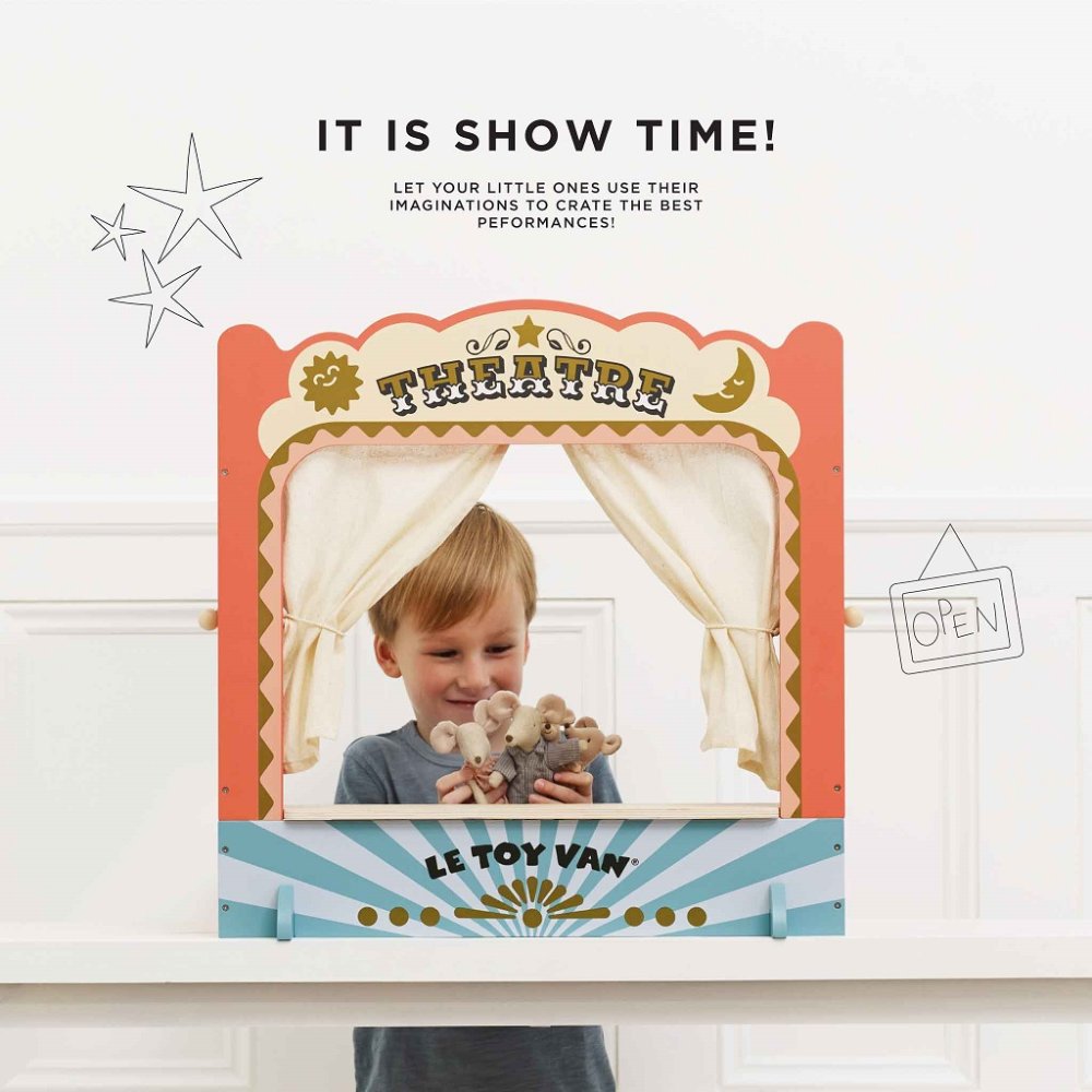 Imaginez une scène où vos enfants se perdent dans un monde de fantaisie et d'histoires. Ce théâtre de marionnettes classique est fabriqué en bois de qualité supérieure certifié FSC® et est décoré de rideaux en tissu qui ajoutent de l'authenticité à la représentation. Il est décoré de détails dorés. Avec ce théâtre, chaque jour se transforme en une aventure passionnante où les enfants peuvent être créatifs, raconter des histoires et créer des scènes infinies. Pour ceux qui ont un espace limité, cette version compacte du théâtre de marionnettes est le choix idéal. Il est complet avec un guichet pour la prévente des billets et un tableau noir pour annoncer la représentation. A l'intérieur de ce théâtre de marionnettes, on peut ouvrir une magnifique scène nocturne avec des étoiles, qui crée une atmosphère magique et illumine l'imagination. Des jouets avec un butTous les jouets Le Toy Van sont fabriqués dans un but précis : durer longtemps. Conçus avec amour par des artisans expérimentés, selon des pratiques éthiques et avec des matériaux durables, plus respectueux de notre planète. Principales caractéristiques : jouet traditionnel pour le développement de l'imaginationpeint avec des peintures non toxiques et des détails dorés fabriqué en bois certifié FSC® La marque et le certificat FSC® (Forest Stewardship Council) garantissent que le bois utilisé pour fabriquer ce produit n'a pas été exploité illégalement et provient de forêts gérées de manière durable ou respectueuse de la nature, dans lesquelles des exigences environnementales et sociales strictes sont respectées. La marque FSC® sur le produit signifie qu'en l'achetant, vous contribuez à protéger les forêts et à soutenir une gestion durable, responsable ou respectueuse de la nature, grâce à laquelle nos forêts sont plus stables, plus saines, ont une composition d'espèces naturelle et résistent mieux aux conséquences négatives du changement climatique.