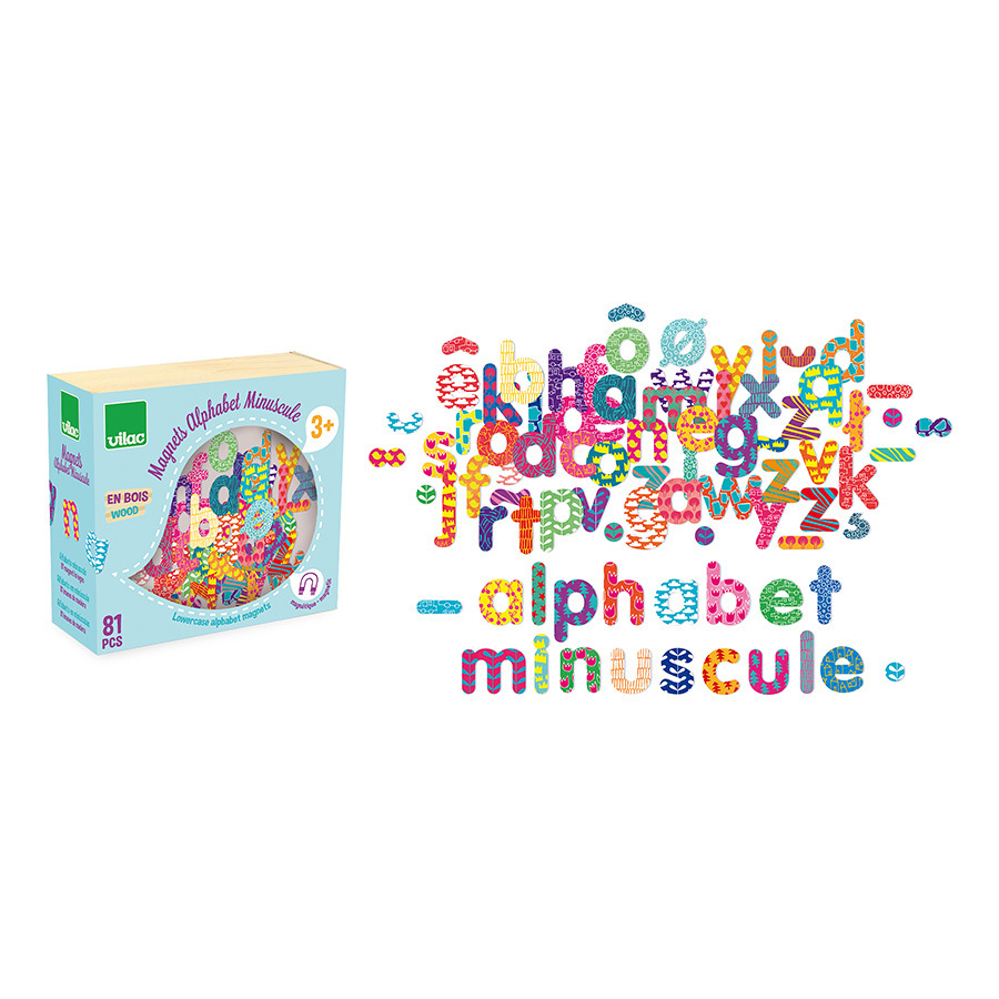 Petites lettres en bois de l'alphabet avec un dos magnétique. Avec ces 56 lettres, les enfants apprendront à composer leurs premiers mots. Ils peuvent jouer avec sur le réfrigérateur ou sur un tableau magnétique. Principales caractéristiques : 56 aimantscouleurs vives et motifs originauxélément de décoration adapté à la chambre et au réfrigérateurfabriqué de manière écologique, dans le respect de l'environnement