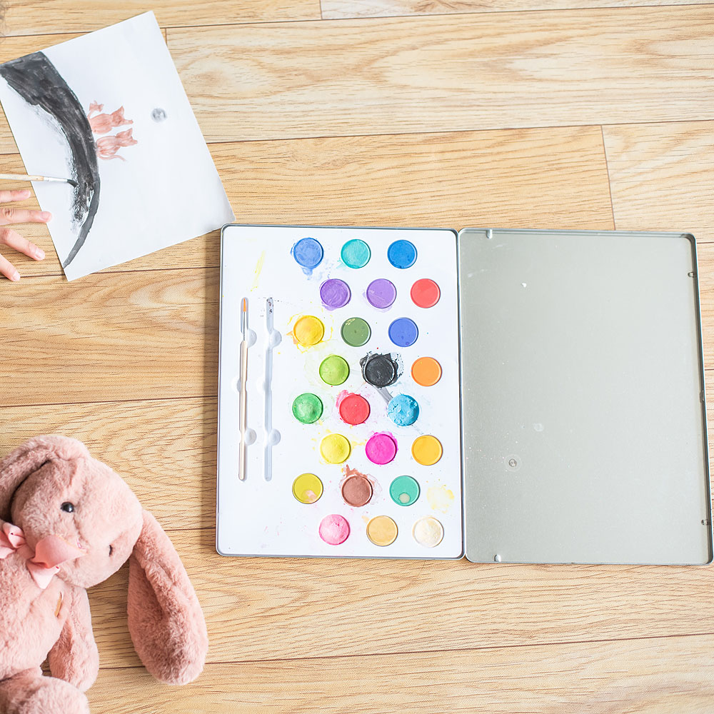 Grand set de peintures à l'eau avec 2 pinceaux dans une boîte en métal. Illustré par Ingela P. Arrhenius.  Principales caractéristiques :  boîtier métallique pour les peinturesdesign Ingela P. Arrhenius   L'artiste suédoise Ingela Peterson Arrhenius est née en 1967. L'art et le design ont toujours eu une place dans sa vie et avant de commencer sa carrière d'illustratrice, Ingela a travaillé comme directrice artistique à Stockholm. Elle a ensuite étudié le design publicitaire et graphique dans une école d'art également à Stockholm. En 1992, elle a commencé à travailler comme illustratrice indépendante et a travaillé à l'international dans la publicité, le design, l'édition… Dans le passé, elle a créé des motifs d'impression pour des tissus, des papiers peints, de la papeterie, et a également travaillé sur des emballages, du design de produits, des accessoires pour la maison et des jouets. Ses affiches et jouets design se trouvent dans le monde entier. Elle a une passion pour le style rétro, ce qui est clairement visible dans ses œuvres ainsi que dans son enthousiasme pour la typographie et les couleurs. Elle vit maintenant à Stockholm avec son mari et ses deux fils.