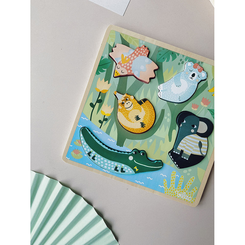 Joli puzzle sensoriel pour enfants, entièrement en bois. Lorsque les enfants retirent une pièce du cadre, ils découvrent en dessous un certain matériau qui a une texture différente sous chaque pièce d'animal. Illustré par Michelle Carlslund. Principales caractéristiques : développe la perception sensorielle des enfantsdesign original Michelle Carlslundcontient 5 pièces Voyagez avec nous dans l'univers naïf et élégant de l'illustratrice danoise Michelle Carlslund, un monde aux couleurs douces, rempli d'oursons adorables et d'oiseaux amicaux. En 2010, alors que Michelle étudiait encore le design graphique, elle a imprimé ses illustrations chez elle et a essayé de les vendre sur un marché de créateurs, où elles ont rencontré un grand succès ! Plusieurs petites boutiques ont voulu commencer à vendre ses créations, et elle a donc pensé qu'il serait bien de créer une entreprise. Michelle est rapidement devenue une illustratrice indépendante reconnue. Aujourd'hui, ses œuvres graphiques écologiques sont disponibles dans le monde entier dans des boutiques de design, des papeteries et des magasins pour enfants. Michelle s'inspire de tout ce qui l'entoure. Ses créations sont douces et poétiques, un style stylisé et enfantin qui se marie parfaitement avec les jouets de Vilac. « J'aime les frites, je suis une optimiste et une créatrice d'affiches écologiques et une illustratrice freelance basée à Copenhague, au Danemark », c'est ce que dirait l'illustratrice Michelle Carlslund si elle devait se décrire en une phrase.