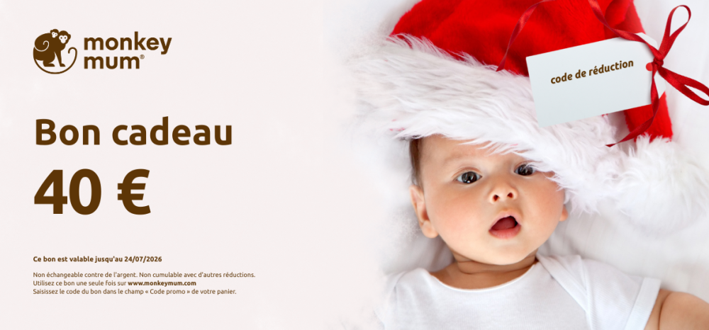 Le chèque-cadeau peut être utilisé en une seule fois pour un achat d'une valeur donnée ou plus sur le site www.monkeymum.com. Le bon n'est pas échangeable contre de l'argent.