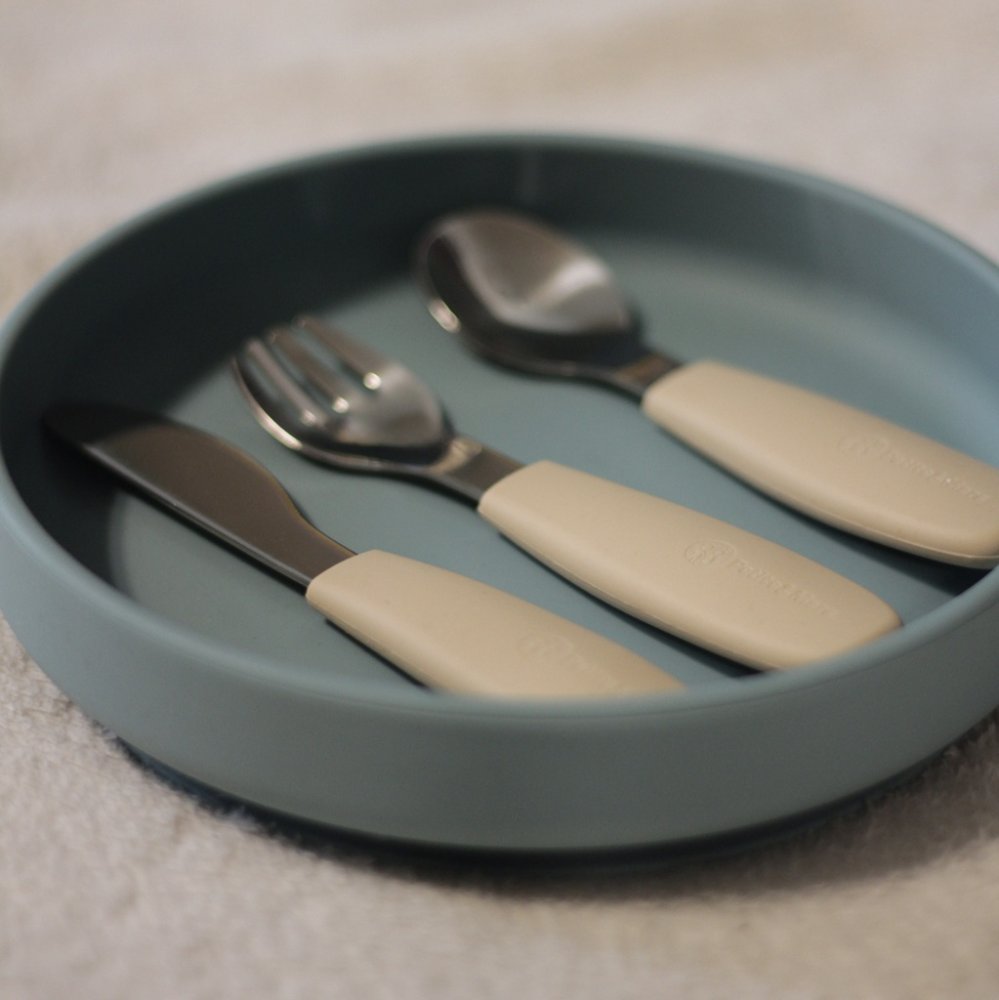 Collection TAKE&MATCHCombinez selon vos goûts !Choisissez les produits dont votre enfant a besoin et combinez-les dans les couleurs que vous aimez.La collection d'accessoires de repas TAKE&MATCH est disponible dans des couleurs tendance et soigneusement sélectionnées qui s'accordent parfaitement. Vous pouvez librement combiner tous les éléments nécessaires pour assembler un ensemble sûr et pratique pour nourrir votre enfant et créer ainsi votre propre collection unique et élégante. Grâce à cette série, l'alimentation devient non seulement facile, mais aussi une activité visuellement agréable et amusante.Un premier ensemble de couverts sûr, confortable et élégant pour les petites mains des enfantsL'ensemble de couverts PETITE&MARS offre une combinaison idéale de fonctionnalité, de sécurité et de design, et est conçu pour les enfants à partir de 12 mois. L'ensemble comprend une cuillère, une fourchette et un couteau, et encourage l'enfant à apprendre à manger seul – jour après jour, repas après repas.Les parties fonctionnelles sont fabriquées en acier inoxydable de haute qualité, tandis que les poignées ergonomiques sont recouvertes de silicone souple de qualité alimentaire, adapté aux petites mains des enfants. Cela rend la prise en main confortable et sûre, ce qui aide à développer de bonnes habitudes alimentaires.Les bords légèrement arrondis assurent la sécurité et l'aspect moderne s'harmonise parfaitement avec les autres ustensiles pour enfants.Caractéristiques principales:- Ensemble complet – 3 pièces : cuillère, fourchette et couteau sans danger pour les enfants- Idéal pour l’alimentation autonome – taille et forme adaptées aux petites mains des enfants- Acier inoxydable + silicone – hygiénique, durable et adapté aux enfants- Poignées ergonomiques antidérapantes – faciles à saisir pour les tout-petits- Bords arrondis – sûr et doux pour une utilisation quotidienne- Design moderne et minimaliste – s'harmonise avec la vaisselle pour enfants de la collection Take&Match- Facile à nettoyer – convient au lave-vaisselleCaractéristiques:- Matériaux : acier inoxydable (parties fonctionnelles), silicone de qualité alimentaire (poignées)- Sans BPA ni phtalates- Âge recommandé : à partir de 12 mois- Dimensions : cuillère et fourchette – 13 × 3 cm, couteau – 14 × 2,5 cm- L'emballage contient : 1 cuillère, 1 fourchette, 1 couteauAVISPour la sécurité et la santé de l'enfant, retirez tous les matériaux d'emballage et les éléments de fixation avant la première utilisation. Ne laissez jamais un enfant sans surveillance pendant qu'il mange. Vérifiez toujours la température des aliments ou des boissons avant de servir. Évitez tout contact avec des objets pointus susceptibles d’endommager la surface du produit. Utilisez toujours le produit sous la surveillance d'un adulte. Vérifiez avant chaque utilisation. Eliminez-la dès les premiers signes de détérioration ou d'usure. Conservez les informations sur le produit pour une utilisation future.Adresse du fournisseur :ags92 s.r.o., Drahobejlova 2515/18, 190 00 Prague, République tchèqueinfo@petiteetmars.com