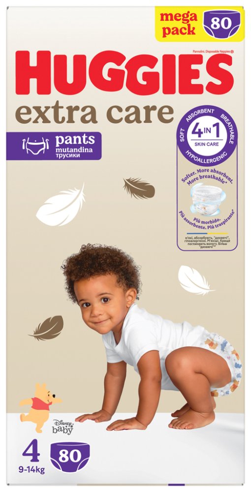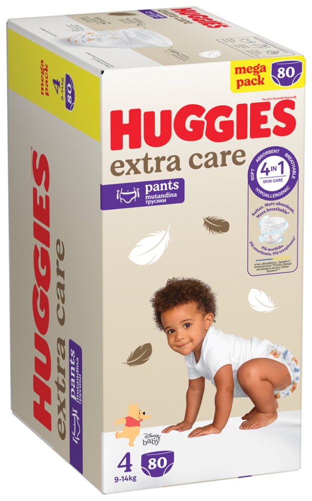 Les couches-culottes jetables Premium HUGGIES® EXTRA CARE sont les couches les plus douces et les plus souples de la marque HUGGIES®. Les coussinets souples en contact direct avec la peau du bébé créent une barrière douce entre la peau et les selles liquides. La couche unique Soft Absorb absorbe le liquide en un rien de temps et garde les fesses de bébé au sec. En outre, le matériau dans lequel les couches sont fabriquées permet à la peau de respirer. Les couches sont deux fois plus fines grâce à la technologie Thin Core et absorbent 20 % de liquide en plus que les autres couches. Ils s'enfilent et s'enlèvent facilement, ce qui permet de les changer en un clin d'œil. L'indicateur d'humidité change de couleur lorsqu'il est temps de changer la couche.Pour les enfants pesant de 6 à 11 kg.AVERTISSEMENT : Emballage en plastique – risque d'étouffement. Tenir l'emballage hors de portée des enfants.Adresse du fabricant : Kimberly-Clark B.V., Copernicuslaan 35, 6716 BM Ede, Pays-Bas / Marques déposées de Kimberly-Clark Worldwide, Inc. ou de ses filiales. © Marques déposées de KCWW (HUGGIES®, KLEENEX® LIDIE® KOTEX®) / www.kimberly-clark.com