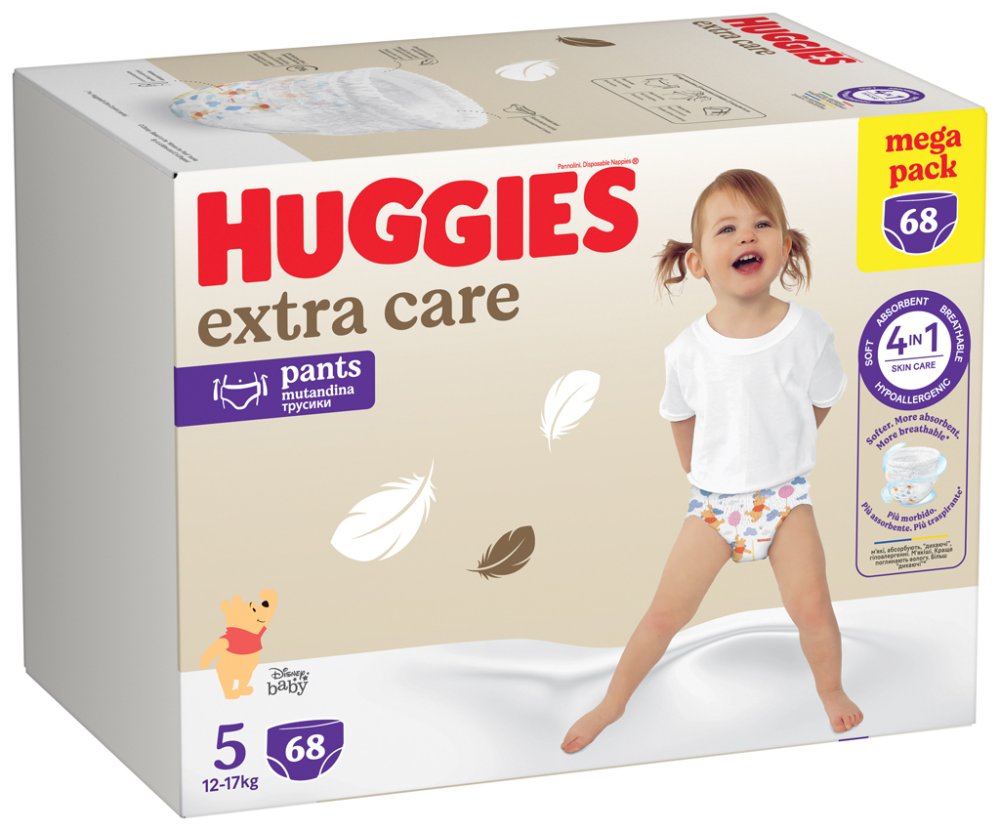 Les couches-culottes jetables Premium HUGGIES® EXTRA CARE sont les couches les plus douces et les plus souples de la marque HUGGIES®. Les coussinets souples en contact direct avec la peau du bébé créent une barrière douce entre la peau et les selles liquides. La couche unique Soft Absorb absorbe le liquide en un rien de temps et garde les fesses de bébé au sec. En outre, le matériau dans lequel les couches sont fabriquées permet à la peau de respirer. Les couches sont deux fois plus fines grâce à la technologie Thin Core et absorbent 20 % de liquide en plus que les autres couches. Ils s'enfilent et s'enlèvent facilement, ce qui permet de les changer en un clin d'œil. L'indicateur d'humidité change de couleur lorsqu'il est temps de changer la couche.Pour les enfants pesant de 9 à 14 kg.AVERTISSEMENT : Emballage en plastique – risque d'étouffement. Tenir l'emballage hors de portée des enfants.Adresse du fabricant : Kimberly-Clark B.V., Copernicuslaan 35, 6716 BM Ede, Pays-Bas / Marques déposées de Kimberly-Clark Worldwide, Inc. ou de ses filiales. © Marques déposées de KCWW (HUGGIES®, KLEENEX® LIDIE® KOTEX®) / www.kimberly-clark.com