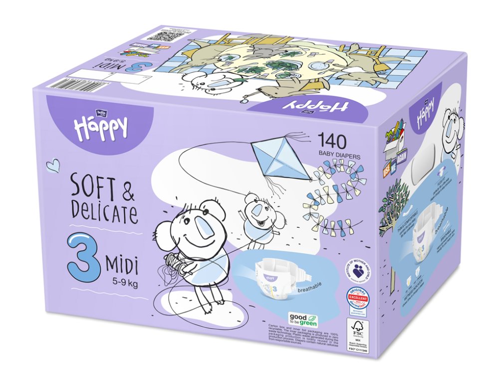 Les couches Happy Soft & Delicate Midi Baby (3) sont recommandées pour les nouveau-nés pesant de 5 à 9 kg. Ils sont fabriqués à partir de matériaux de la plus haute qualité, s'adaptent parfaitement au corps du bébé et procurent une agréable sensation de sécheresse. Ils sont conçus pour répondre aux besoins des peaux les plus sensibles – ils ne contiennent pas d'allergènes et minimisent le risque d'érythème fessier.Composition:Fibre de cellulose, non-tissés superabsorbants, hydrophobes et hydrophiles, film respirant, adhésifs, papier de soie, bande élastique, fibres élastomères, indicateur d'humiditéAVERTISSEMENT : Conservez tous les matériaux d'emballage hors de portée des enfants. Il pourrait y avoir asphyxie.Adresse du fournisseur : Toruńskie Zakłady Materiałów Opatrunkowych SA, ul. Żółkiewskiego 20/26, Toruń 87-100, Poland, http://tzmo-global.com, tzmo@tzmo-global.com