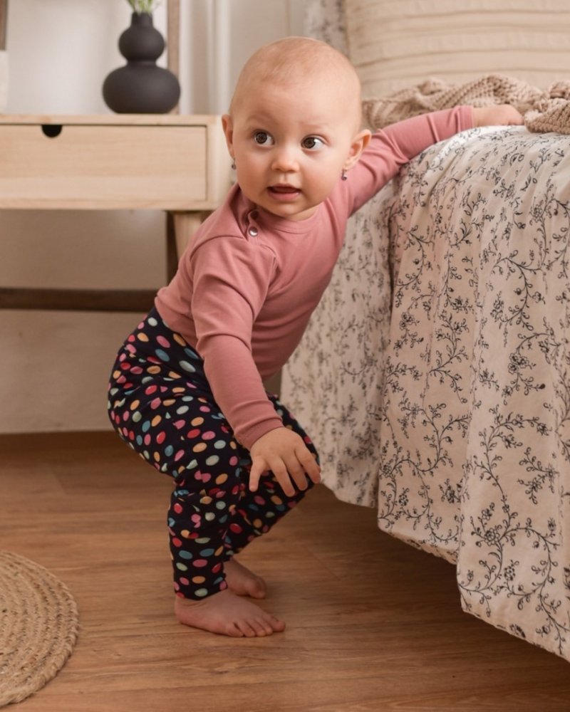 L'élasthanne dans le tricot assure l'élasticité et un ajustement parfait au corps de bébé