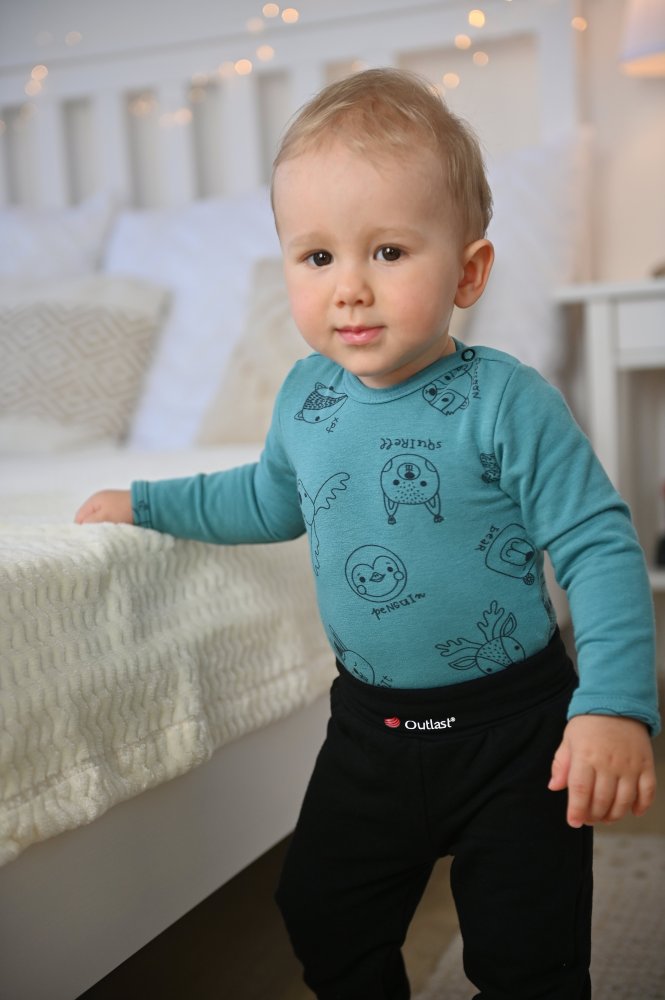 Le corps à manches longues en tricot épais est parfait pour les mois froids. Il convient comme couche de base pour les sorties, mais il peut aussi être porté à la maison en combinaison avec un pantalon de survêtement ou une grenouillère. Le body est fabriqué dans une matière souple et agréable qui s'adapte à différentes tailles. Les mamans apprécieront certainement la fermeture à boutons-pression au niveau du cou et de l'entrejambe, ce qui rend le body très facile et rapide à enfiler. Lors de la fabrication de ce body, le matériau Outlast® a été utilisé dans une variante bouclée, qui est lisse sur le devant et a des boucles sur l'envers. Le matériau Outlast® peut réguler la température corporelle, évacuer l'excès de chaleur et empêcher la transpiration pendant le port. Lorsque la température corporelle baisse, le matériau Outlast® libère la chaleur accumulée et commence à réchauffer le corps. Les vêtements en matériau Outlast® sont très populaires grâce à leurs propriétés thermorégulatrices, car ils assurent un confort thermique pendant toute la durée du port. Le body à manches longues est adapté aux mois d'automne, d'hiver et de printemps.