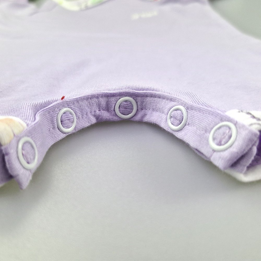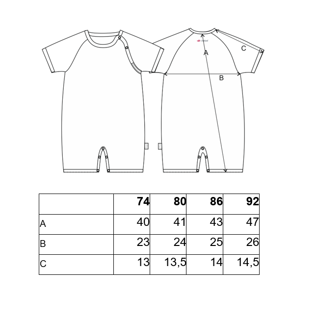 Grâce à l'élasticité du matériau, la combinaison épouse parfaitement le corps et ne se déforme nulle part. Il se ferme avec des boutons-pression situés d'un côté du cou et à l'entrejambe pour faciliter le change.