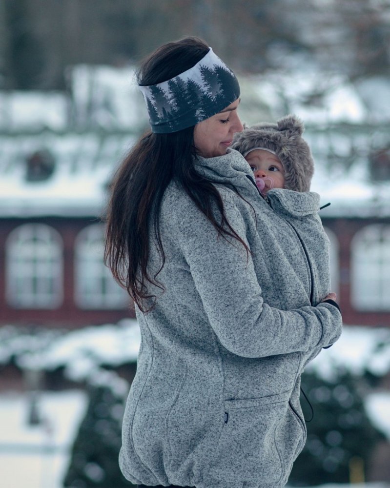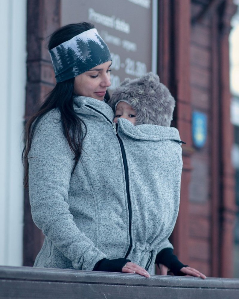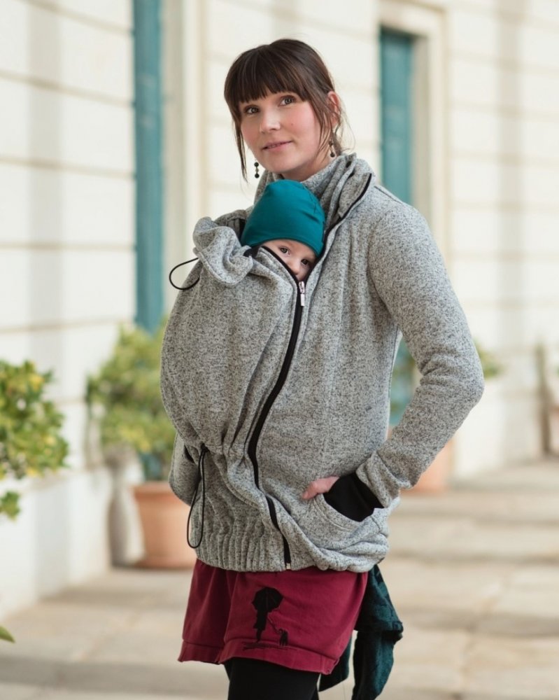 Le pull-over lui-même ne sert pas de support. L'enfant doit être porté dans une écharpe ou un autre moyen de transport, la veste n'est enfilée que lorsque l'enfant est ainsi attaché.