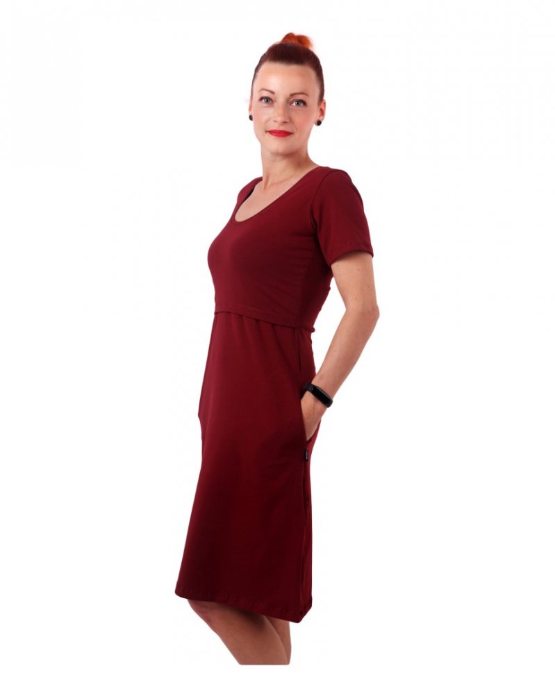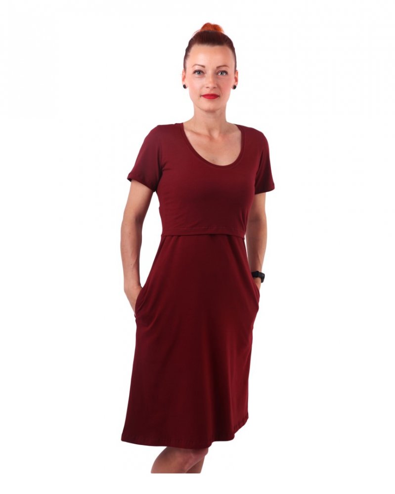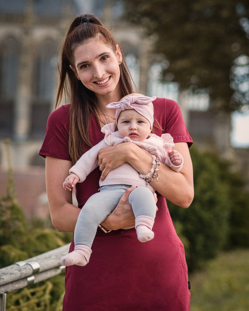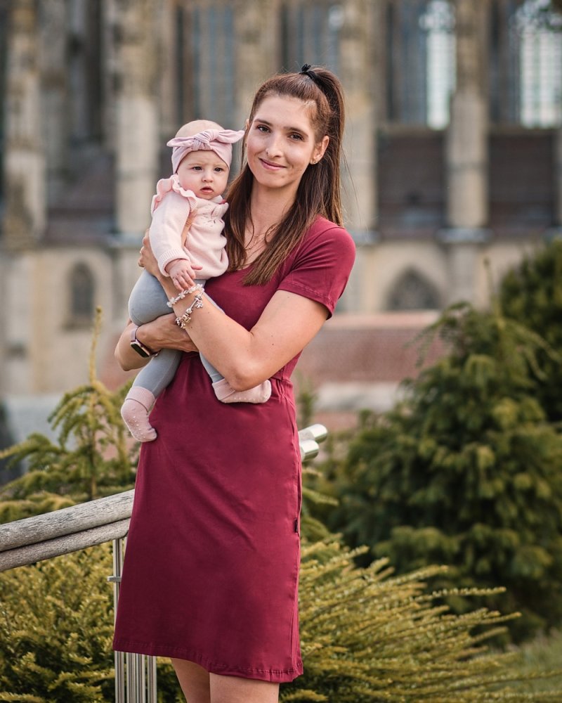 Robe d'allaitement Tea- basée sur la coupe la plus populaire de nos t-shirts d'allaitement Kateřina- la coupe est similaire à celle de la robe d'allaitement Elena, mais elle est plus ample au niveau du ventre et des fesses- permet un allaitement totalement discret et confortable à tout moment et en tout lieu- les passants ne remarqueront même pas que vous allaitez, que vous allaitez – vous ne dévoilez que ce dont vous avez besoin et la robe couvre la tête du bébé- coupe universelle pour toutes les occasions- avec des escarpins, des baskets, des sandales ou des bottes – vous pouvez l'utiliser tout au long de l'année – poches dans les coutures latérales