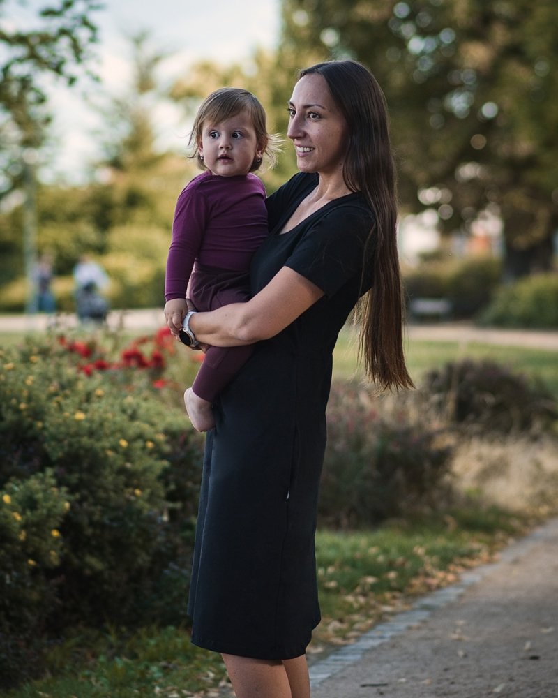 Robe d'allaitement Tea- basée sur la coupe la plus populaire de nos t-shirts d'allaitement Kateřina- la coupe est similaire à celle de la robe d'allaitement Elena, mais elle est plus ample au niveau du ventre et des fesses- permet un allaitement totalement discret et confortable à tout moment et en tout lieu- les passants ne remarqueront même pas que vous allaitez, que vous allaitez – vous ne dévoilez que ce dont vous avez besoin et la robe couvre la tête du bébé- coupe universelle pour toutes les occasions- avec des escarpins, des baskets, des sandales ou des bottes – vous pouvez l'utiliser tout au long de l'année – poches dans les coutures latérales
