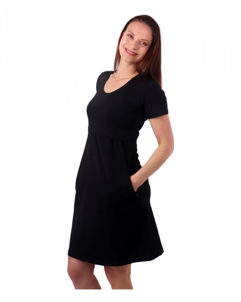 Robe d'allaitement avec poches Thé, manches courtes, noir M/L
