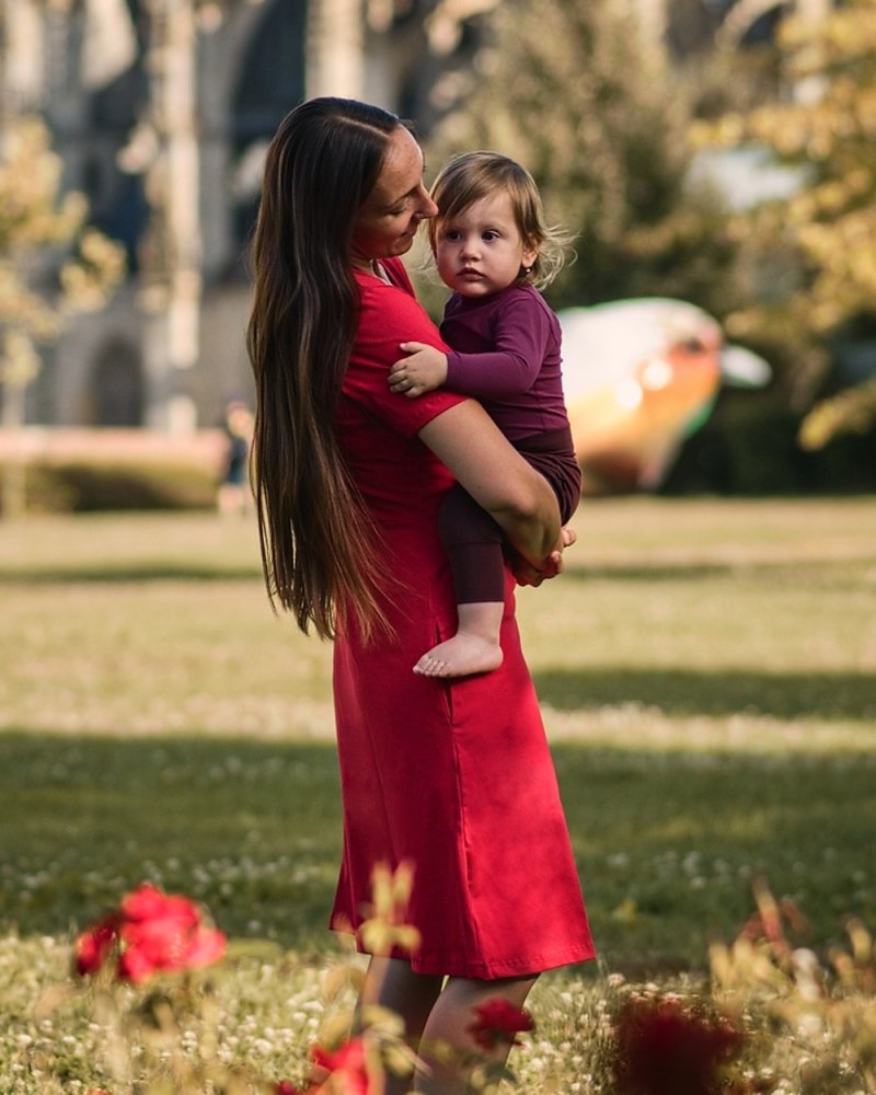 Robe d'allaitement Tea- basée sur la coupe la plus populaire de nos t-shirts d'allaitement Kateřina- la coupe est similaire à celle de la robe d'allaitement Elena, mais elle est plus ample au niveau du ventre et des fesses- permet un allaitement totalement discret et confortable à tout moment et en tout lieu- les passants ne remarqueront même pas que vous allaitez, que vous allaitez – vous ne dévoilez que ce dont vous avez besoin et la robe couvre la tête du bébé- coupe universelle pour toutes les occasions- avec des escarpins, des baskets, des sandales ou des bottes – vous pouvez l'utiliser tout au long de l'année – poches dans les coutures latérales
