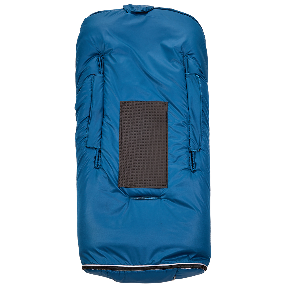 Dimensions : version courte/étroite : 90 x 45 cm, version longue/étroite : 100 x 45 cm, version longue/large : 100 x 50 cm, sac de couchage déplié sur un tapis : 100 x 90 cm. La circonférence de la chancelière augmente de 10 cm lorsque la ceinture est attachée.